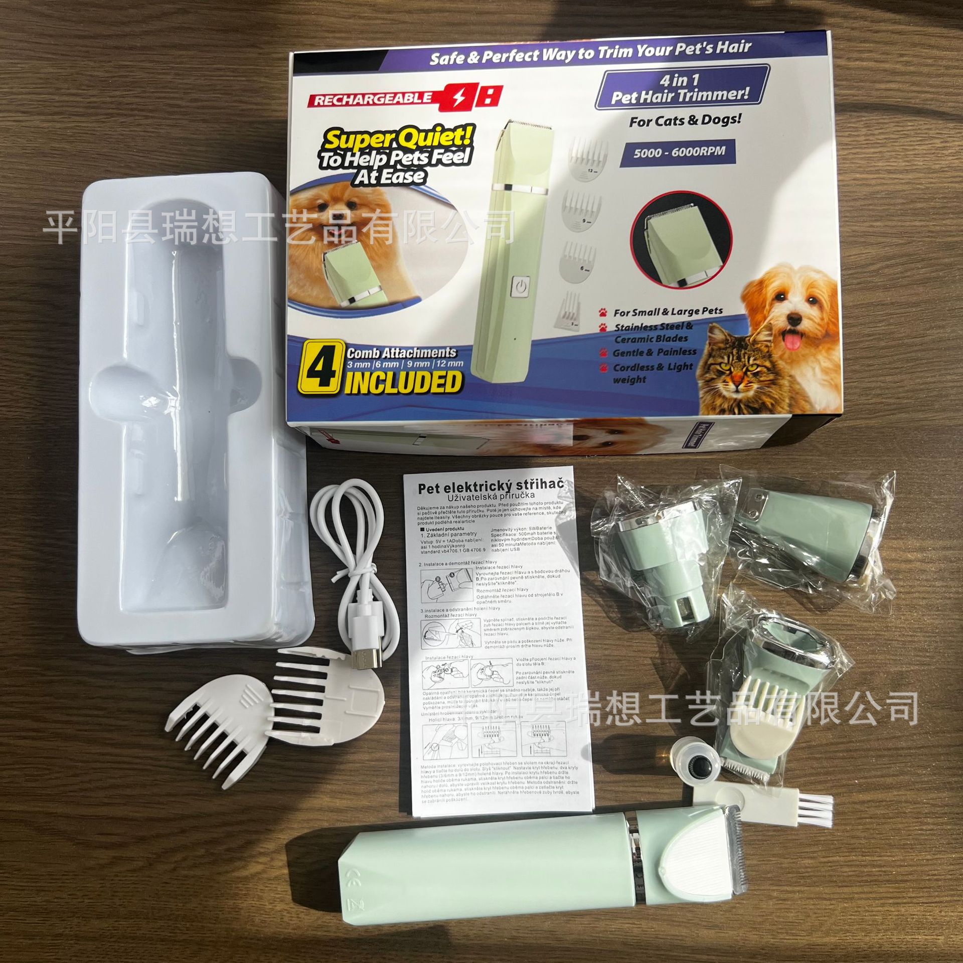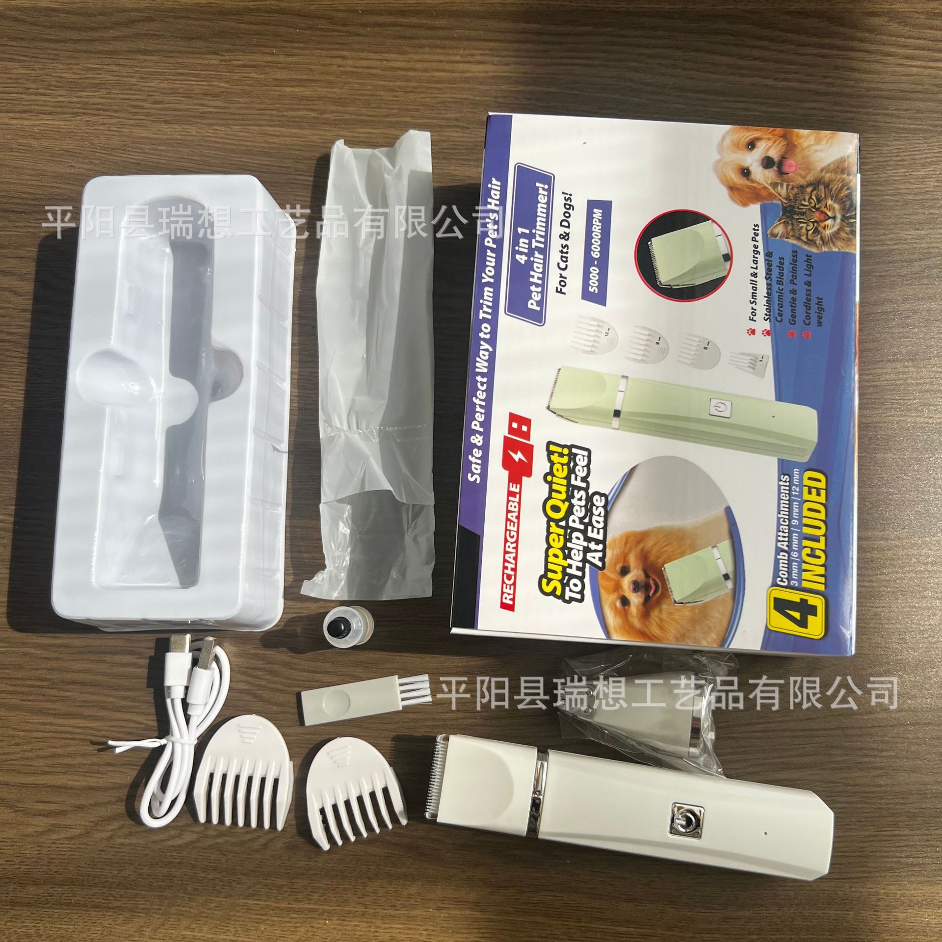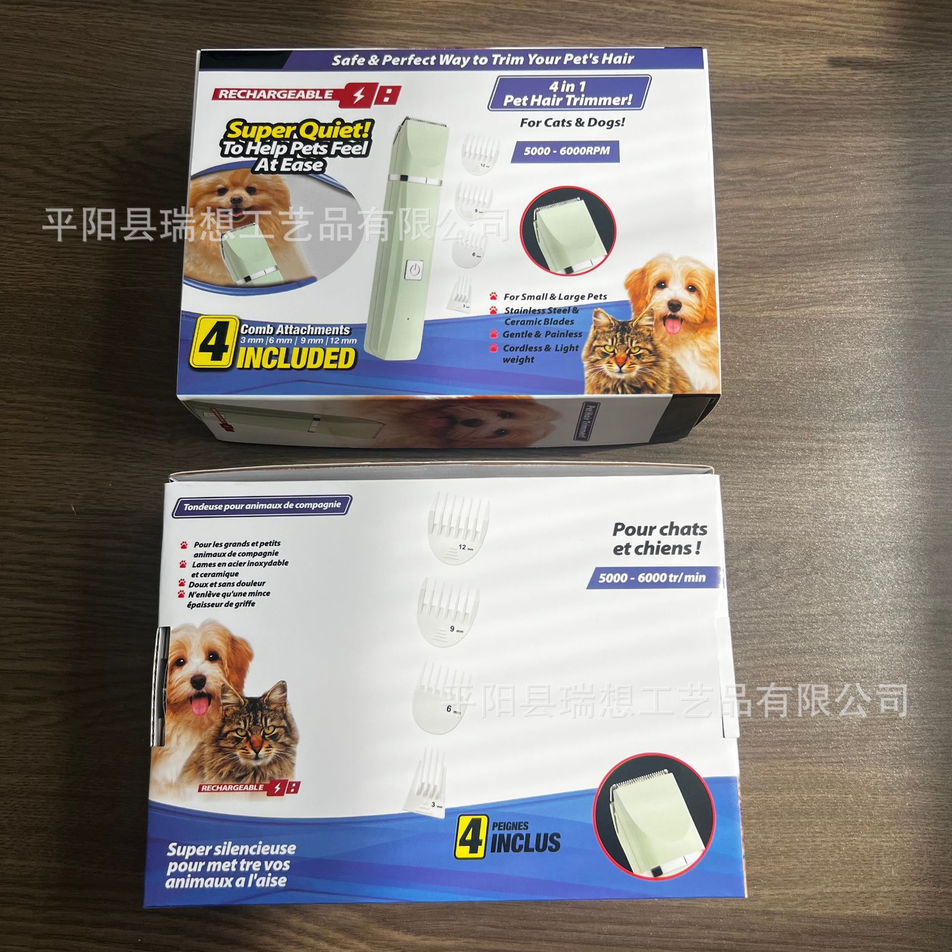 产品配件:包装盒、说明书、四个限位梳、一个USB充电线、一瓶润滑油、一只清洁刷