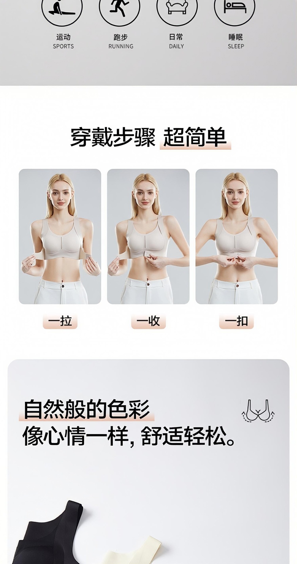 편안한 Litching 탑 업 안티 처짐 비 마킹 스틸 링은 여성을위한 스포츠 프론트 버클 푸시 업 속옷을 제공합니다.스토어 가기