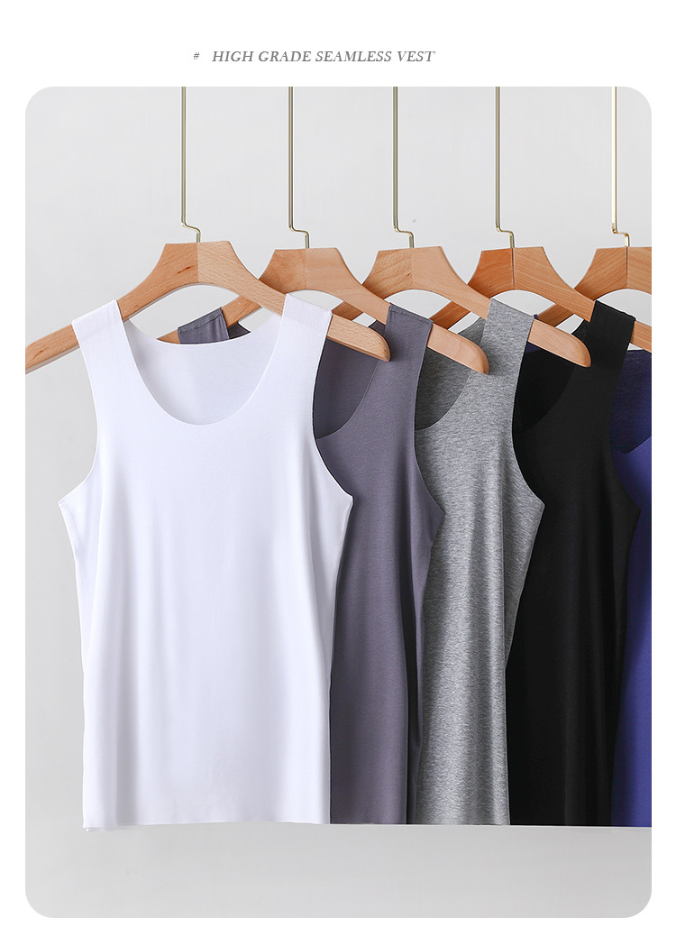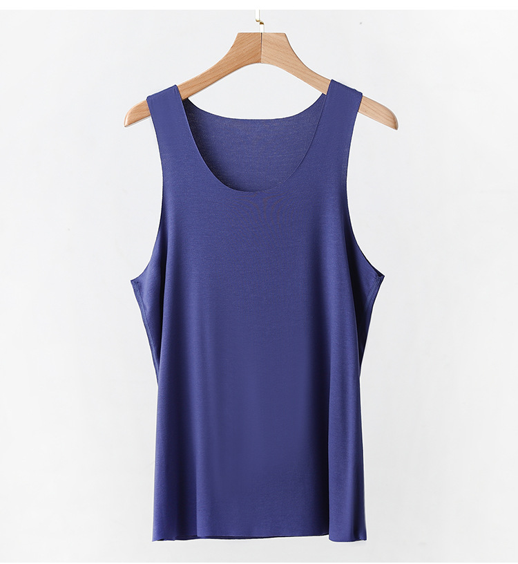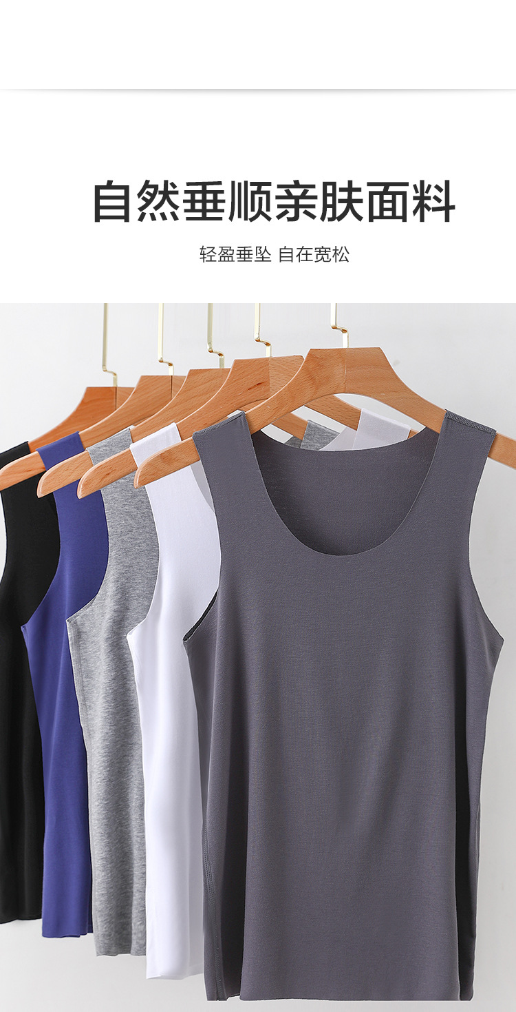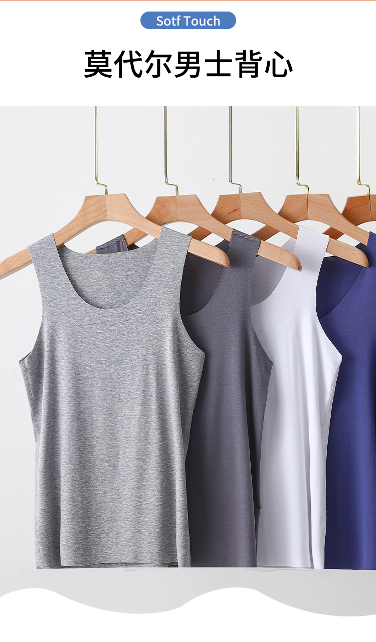 모달 남성 조끼 여름 얇은 라운드 넥 솔리드 컬러 언더 셔츠 대형 루즈 화이트 민소매 티셔츠 캐주얼 베이스