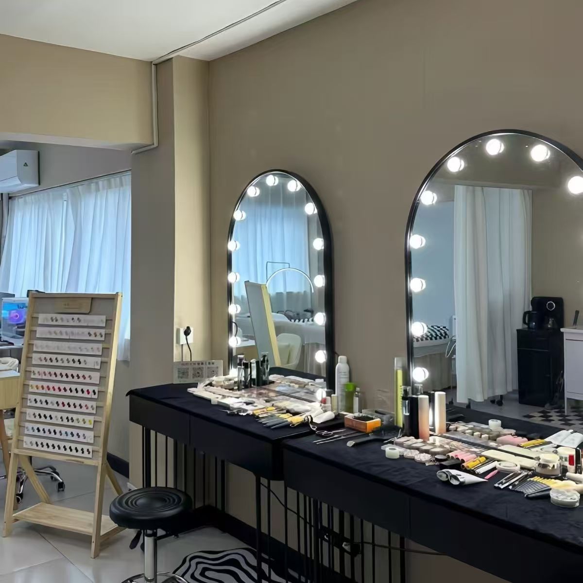 밝은 전문 메이크업 웨딩 원피스 뷰티 살롱 네일 살롱 메이크업 아티스트 드레싱 테이블이있는 북유럽 바람 스튜디오 드레싱 테이블
