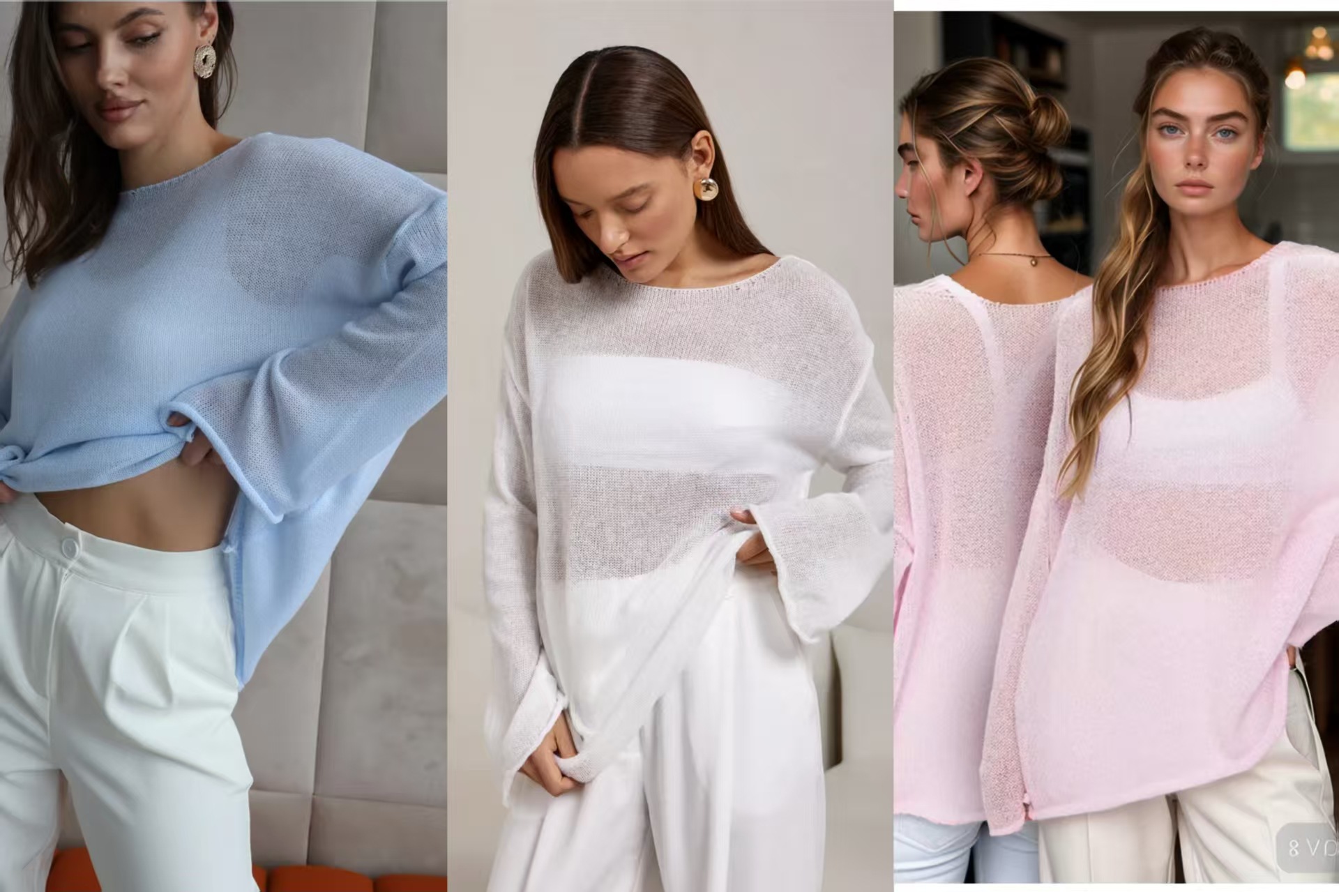 국경 간 유럽과 미국의 얇은 대형 라운드 넥 벨 슬리브 니트 티셔츠 2025 봄 여름 새로운 여성 시스루 중공 스웨터스토어 가기