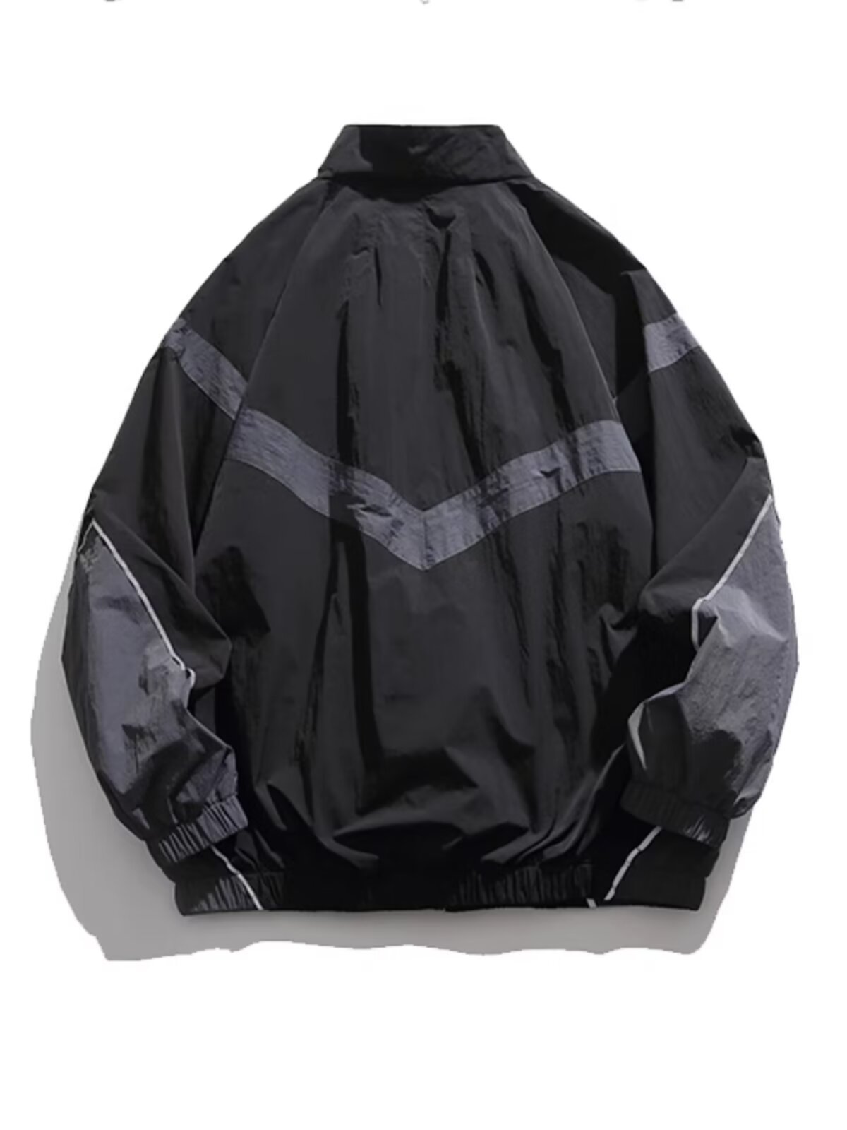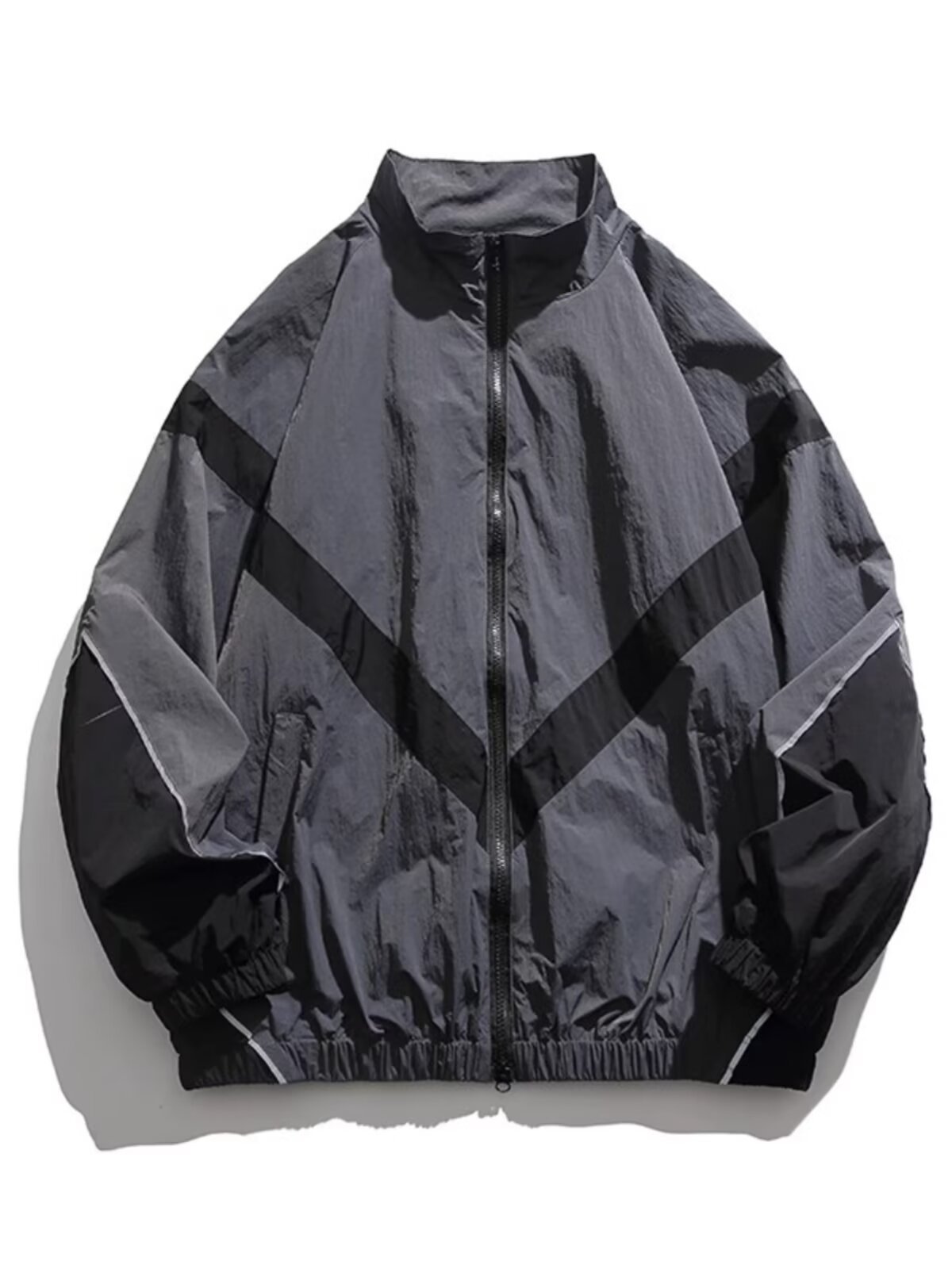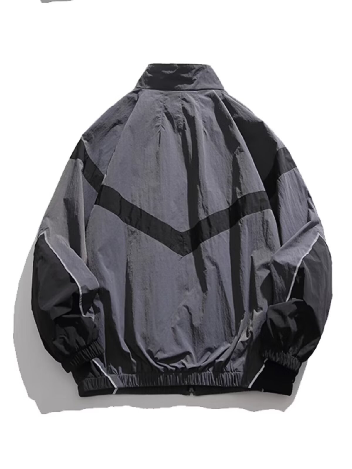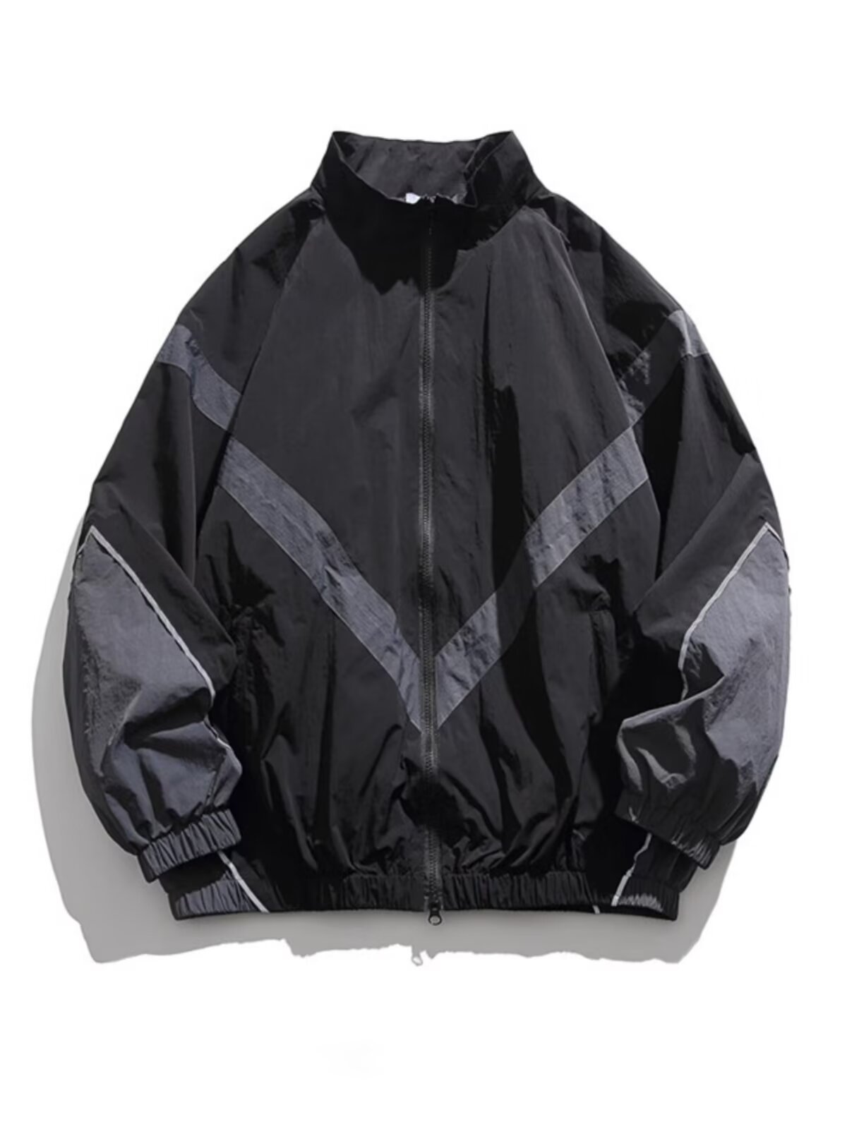 미국 트렌디 브랜드 인레이드 반사 스플라이싱 스탠드 칼라 지퍼 재킷 가을 재킷 루즈 캐주얼 재킷 남성용 얇은 스타일