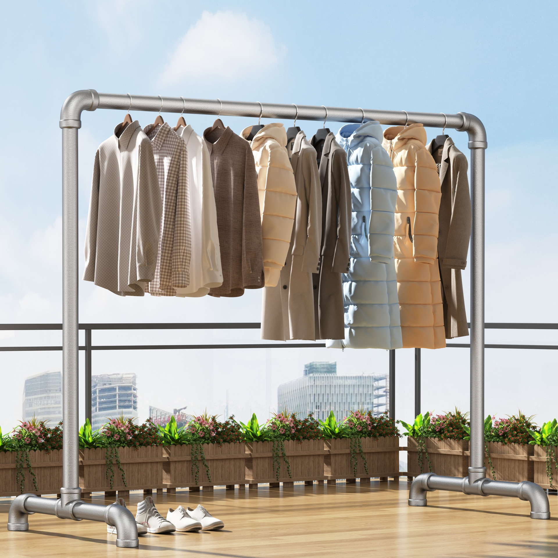가정용 스테인레스 스틸 옷걸이 바닥에서 천장까지 발코니 냉각기 옷걸이 실내 및 실외 옷 건조 강철 파이프 옷걸이스토어 가기