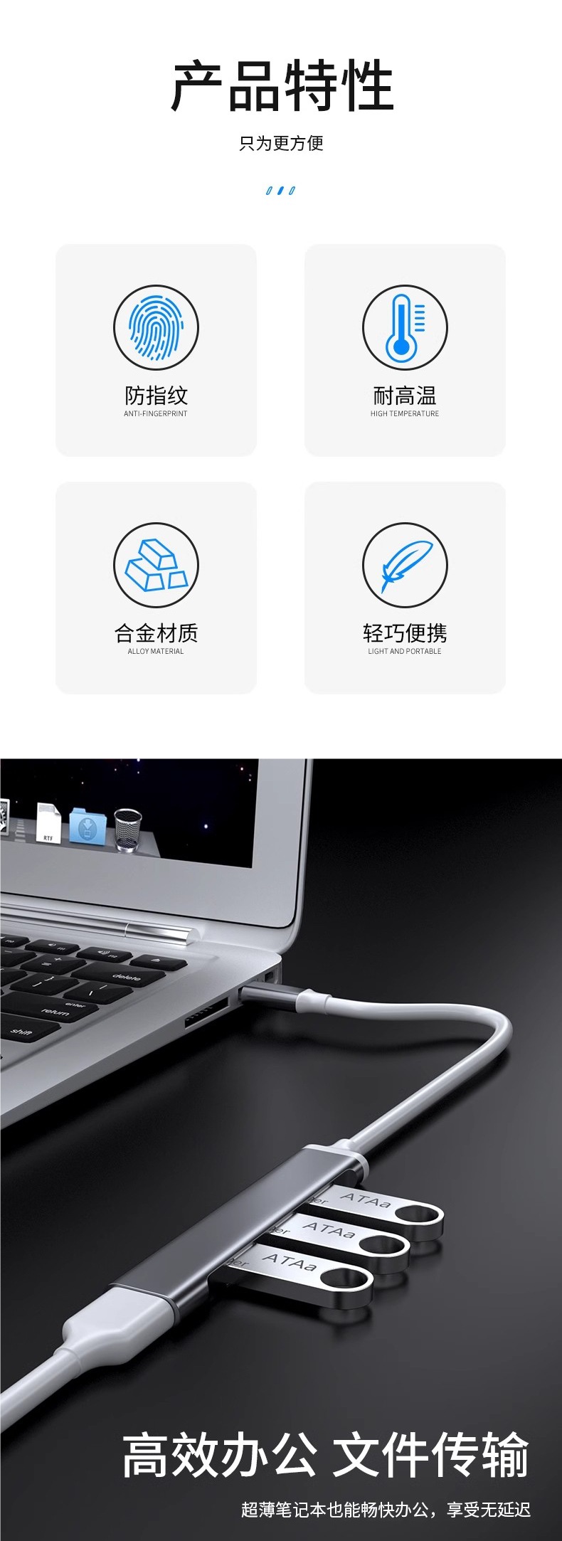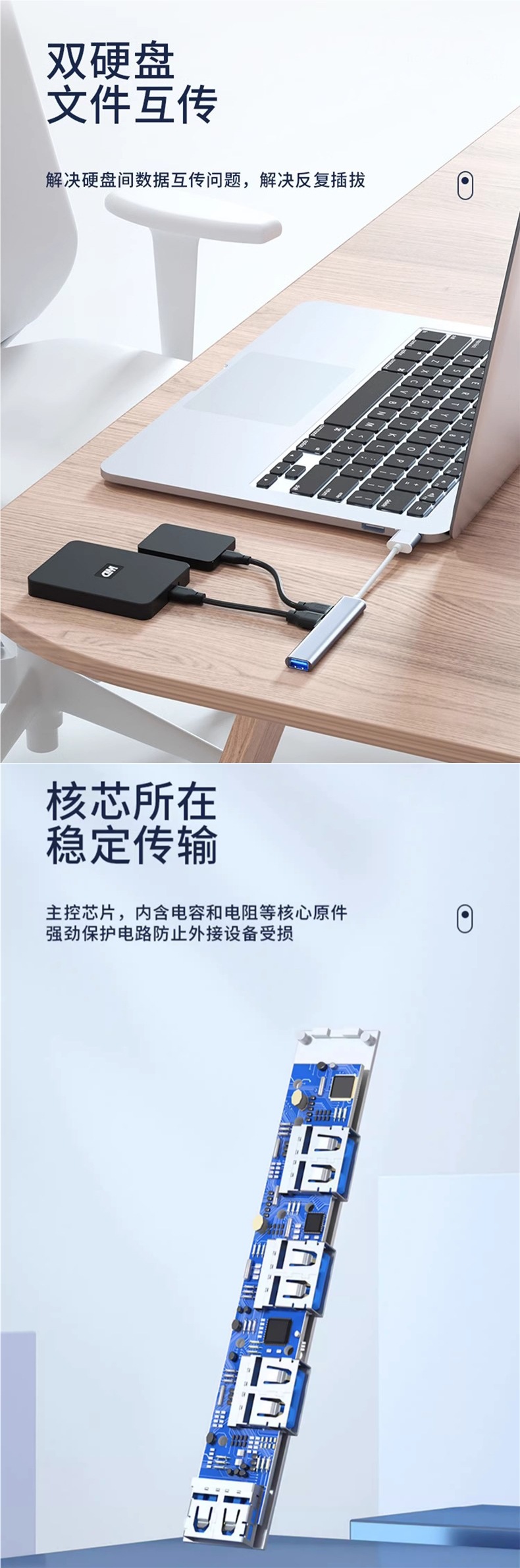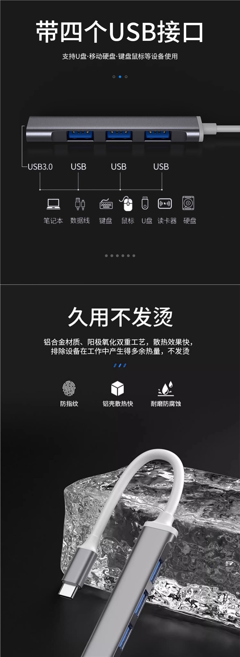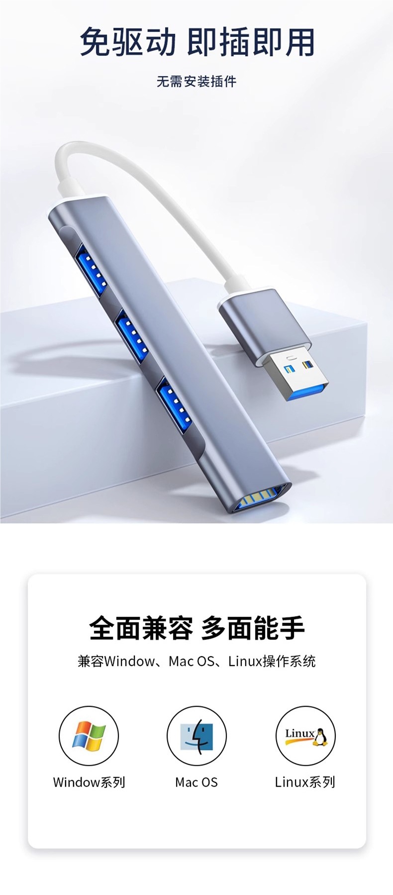 • 실버 Typec3.0 인터페이스 [동시에 사용할 수 있는 드라이버가 없는 4개 포트 + 고속 파일 전송]