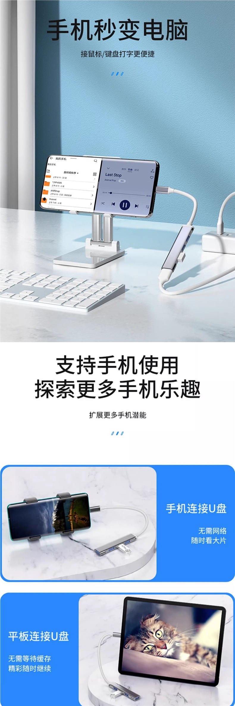 USB3.0 확장기 노트북 typec 확장 도크 멀티 소켓 도킹 스테이션 플러스 연장 코드 연장 세트 케이블스토어 가기