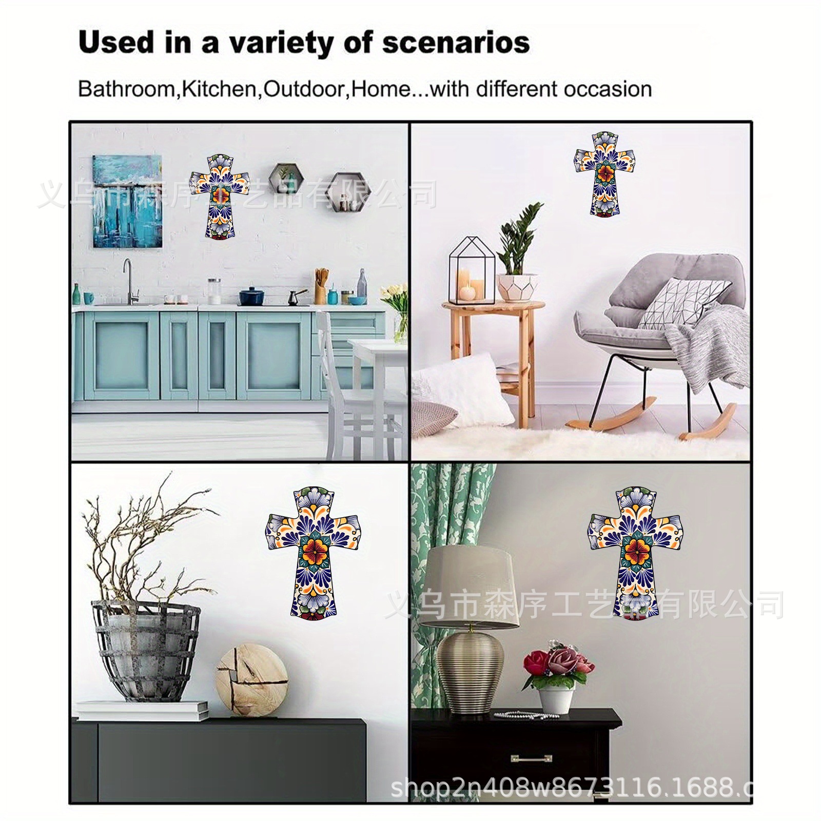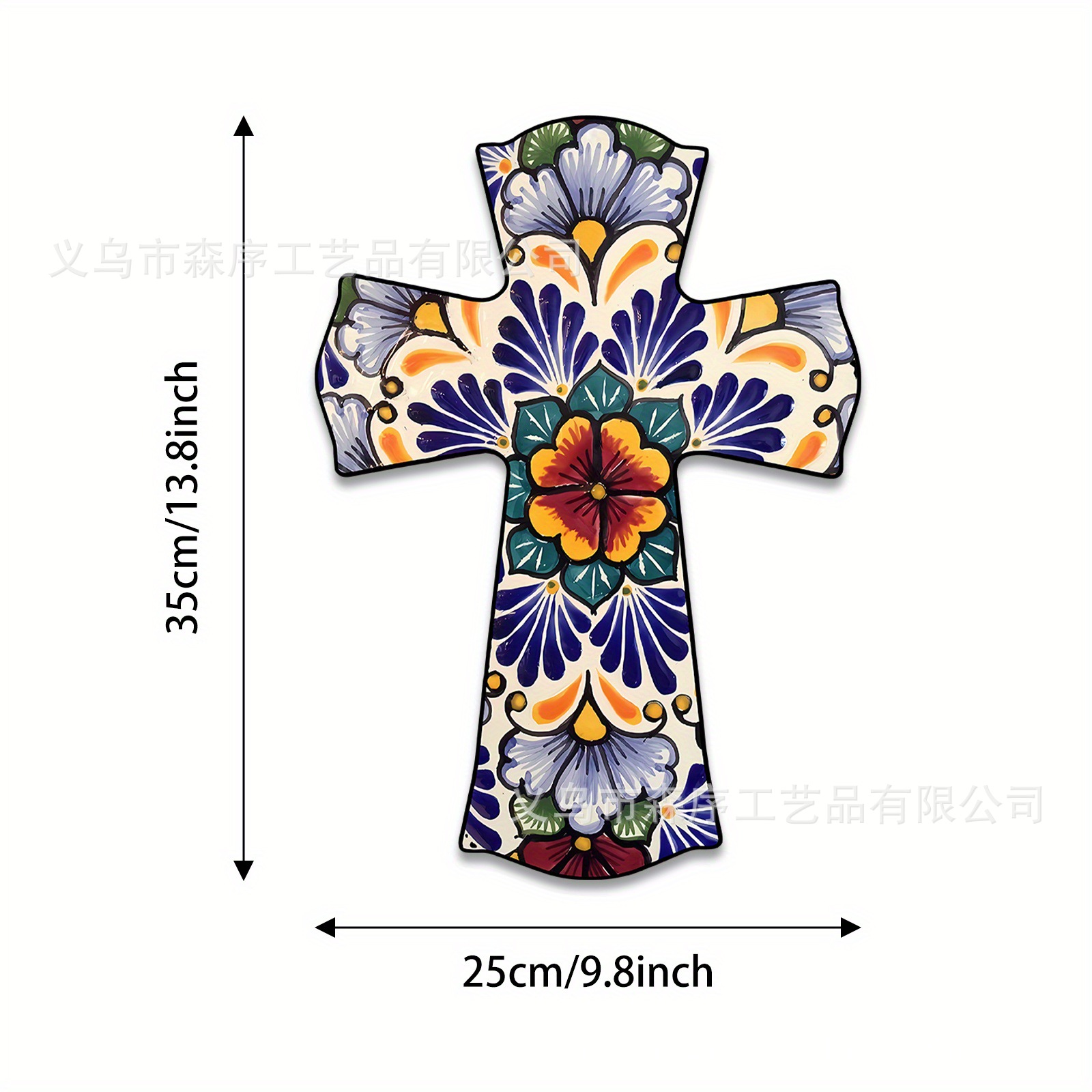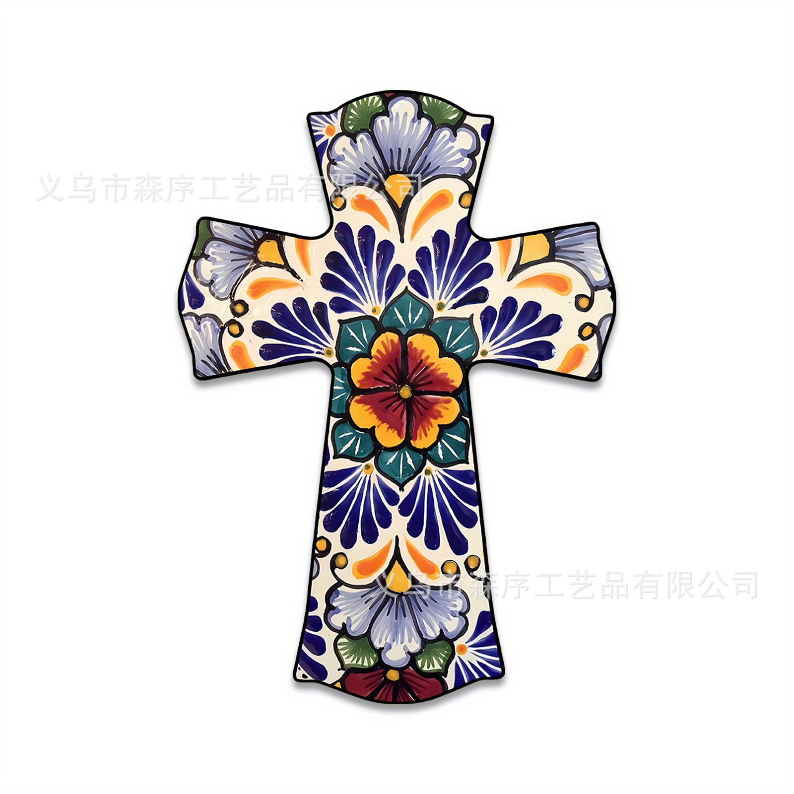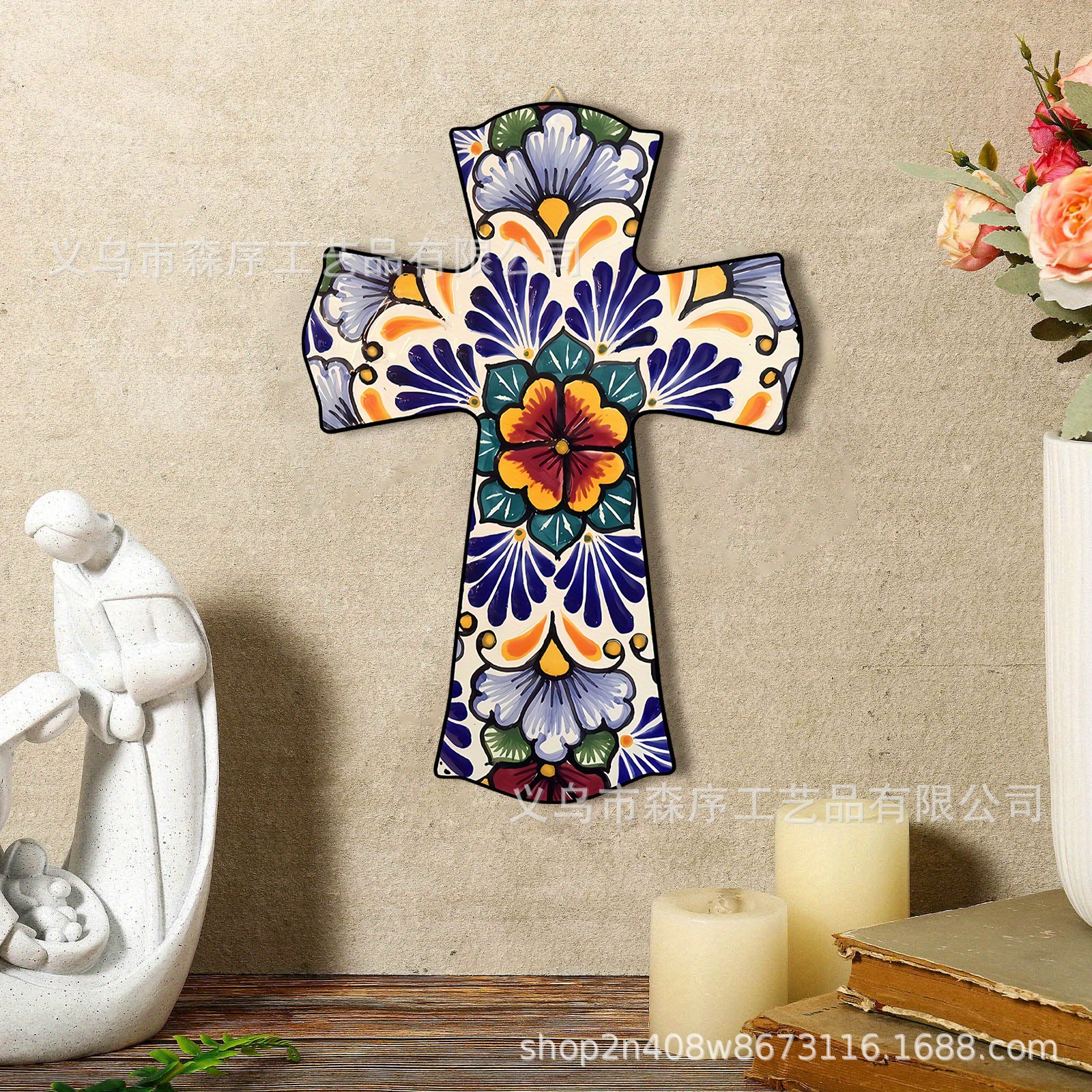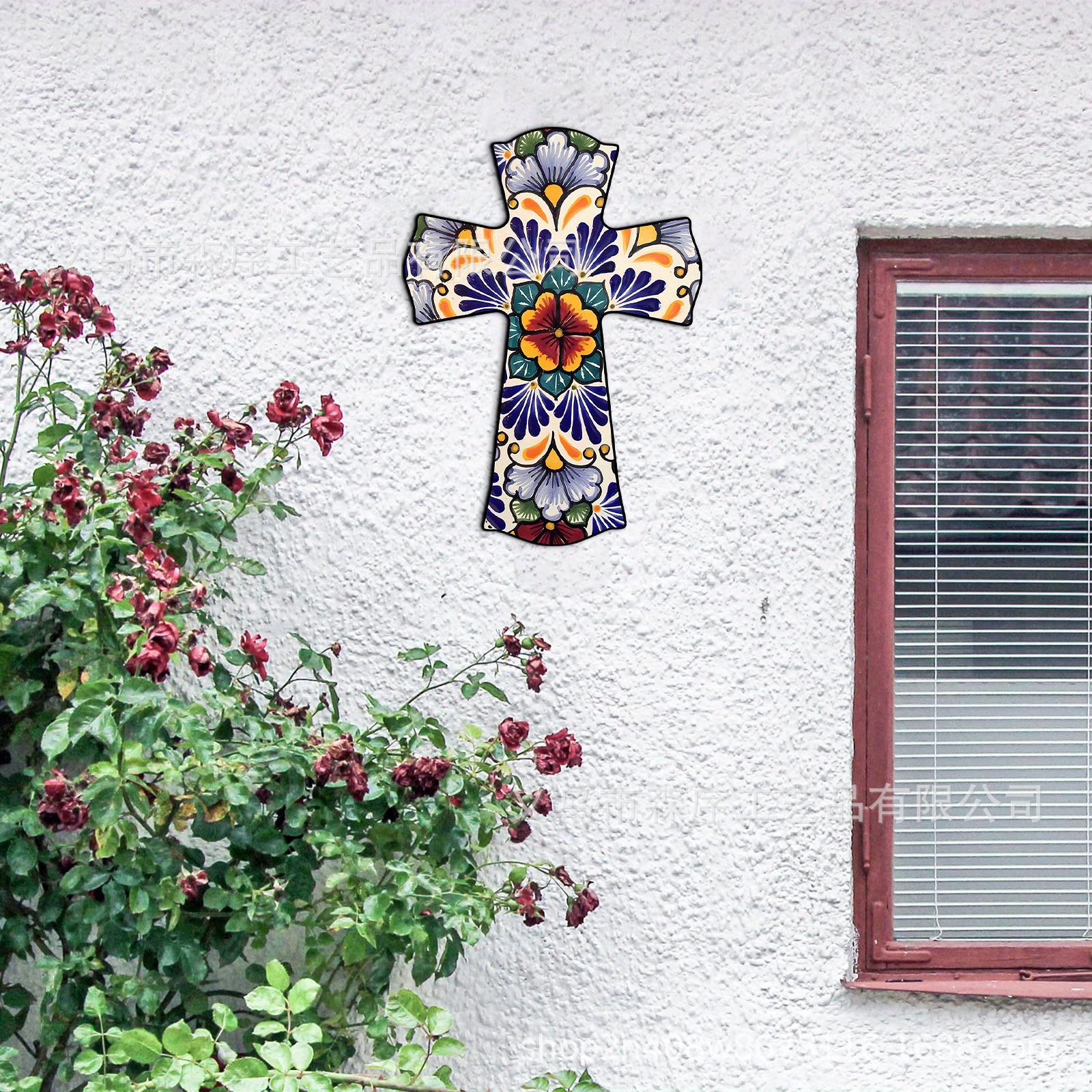 1PC 멕시코 세라믹 크로스 벽 예술 다채로운 꽃 나무 홈 농가 주방 거실 욕실 교수형 장식품