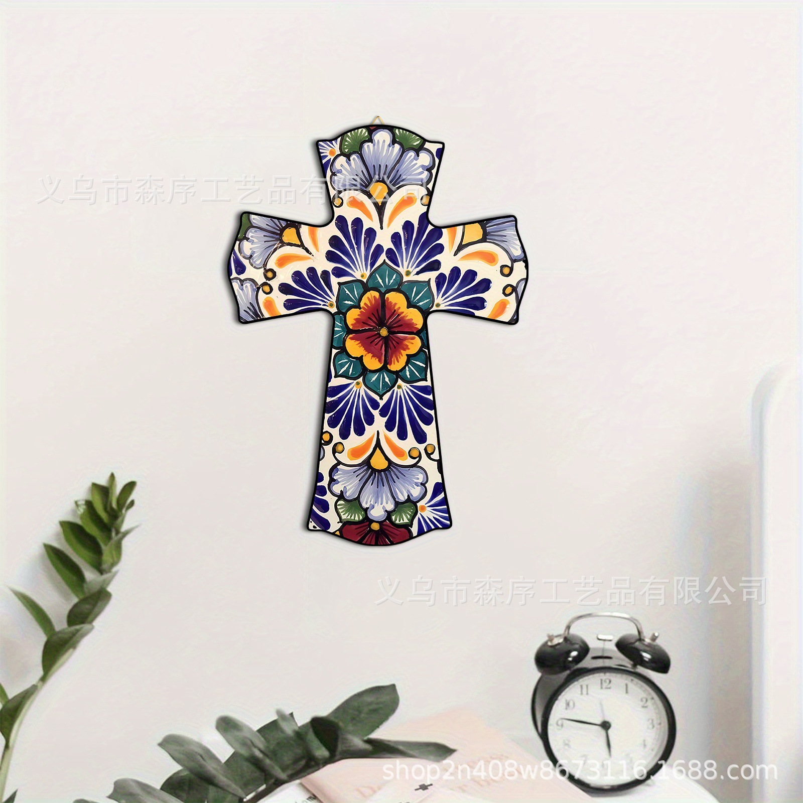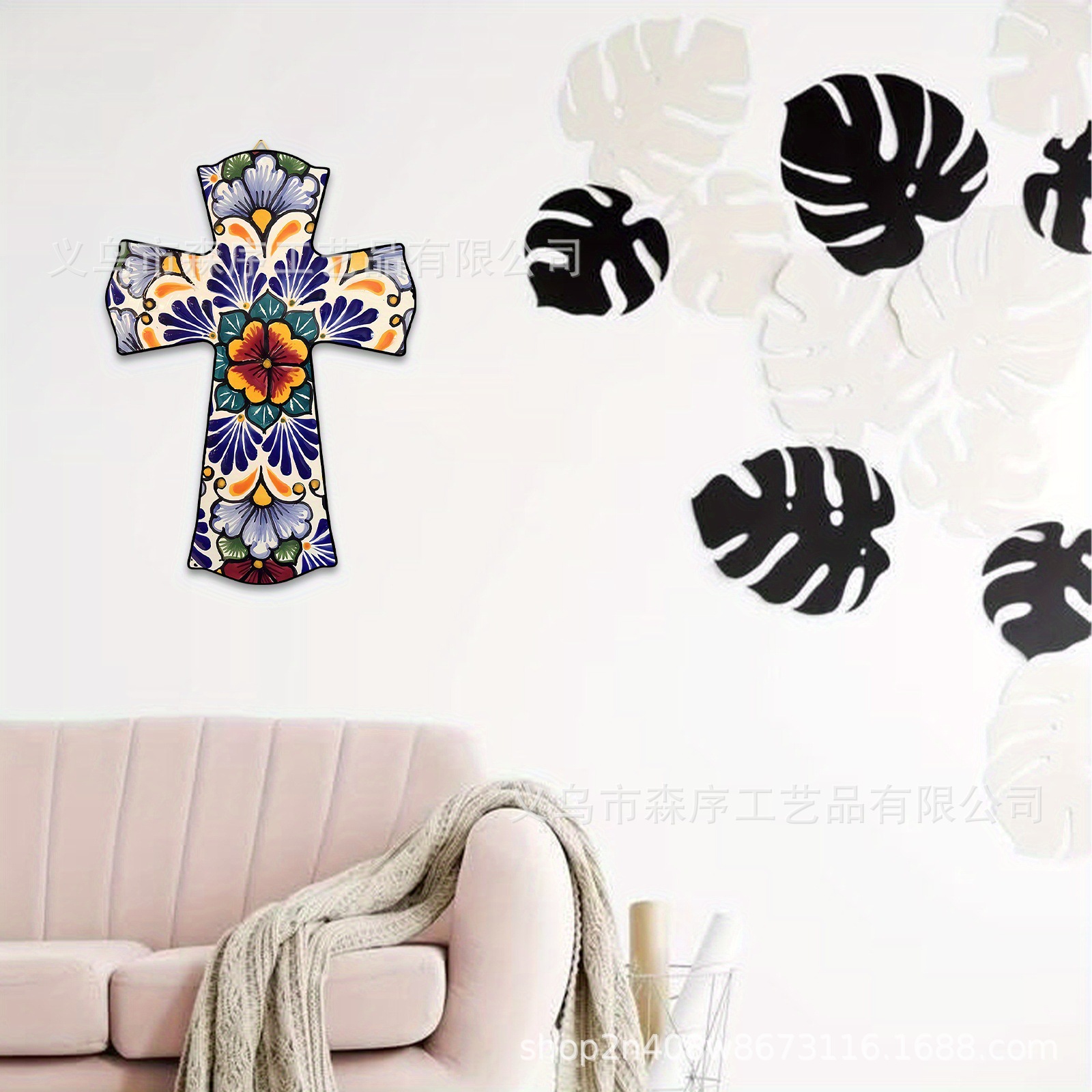 1PC 멕시코 세라믹 크로스 벽 예술 다채로운 꽃 나무 홈 농가 주방 거실 욕실 교수형 장식품스토어 가기