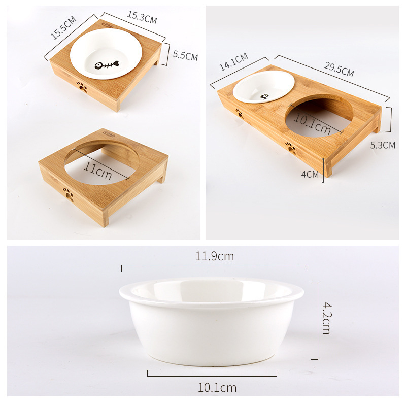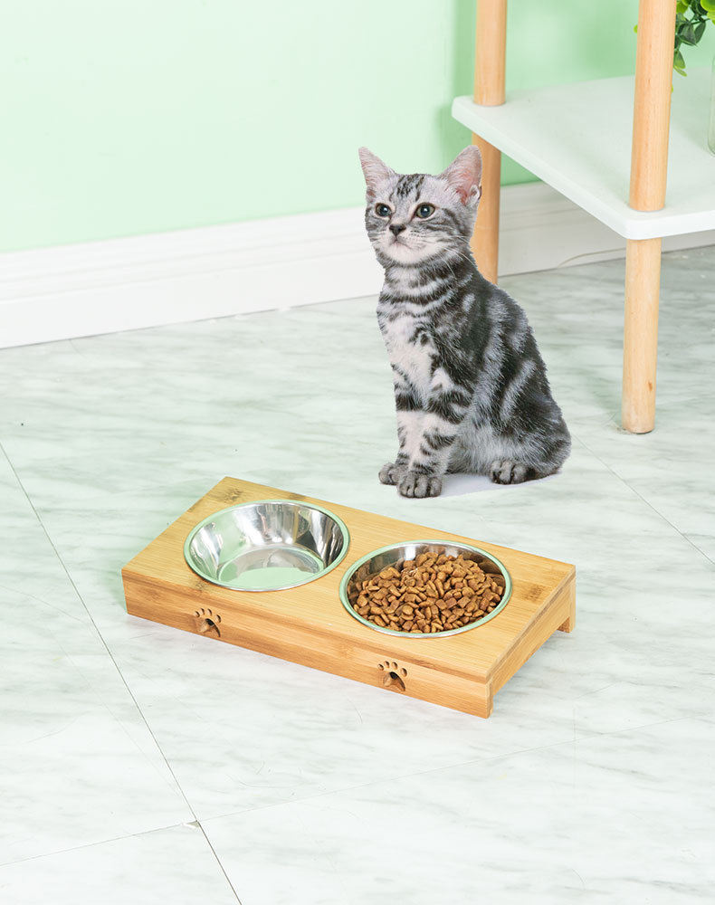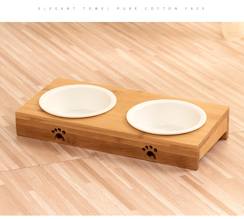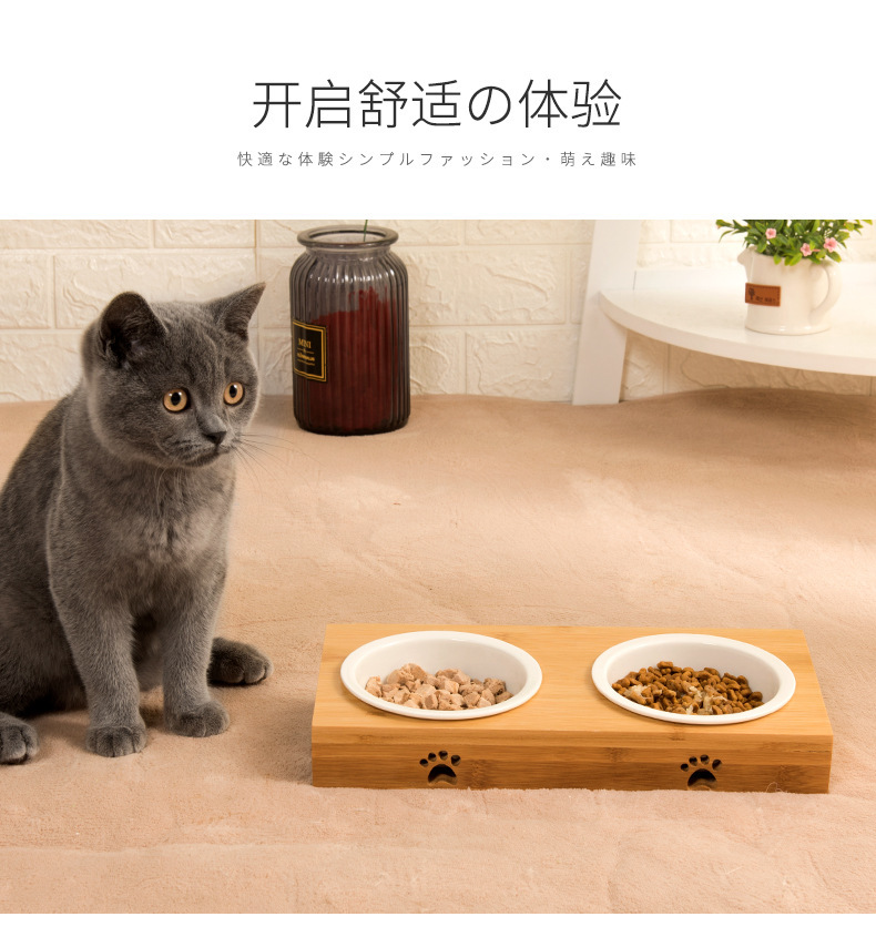 대나무 애완 동물 고양이 더블 그릇 세라믹 스테인레스 스틸 개 그릇 고양이 밥 그릇 개 먹이 그릇 개 물 그릇 밥 그릇 재고 있음