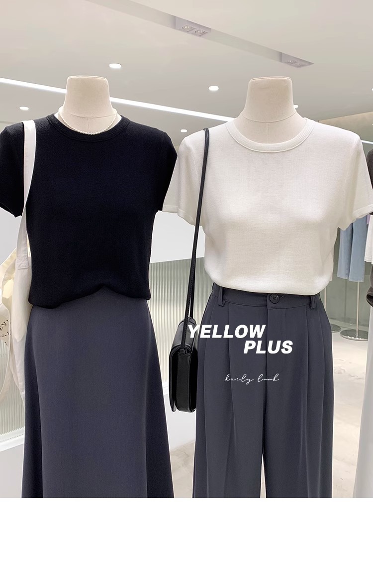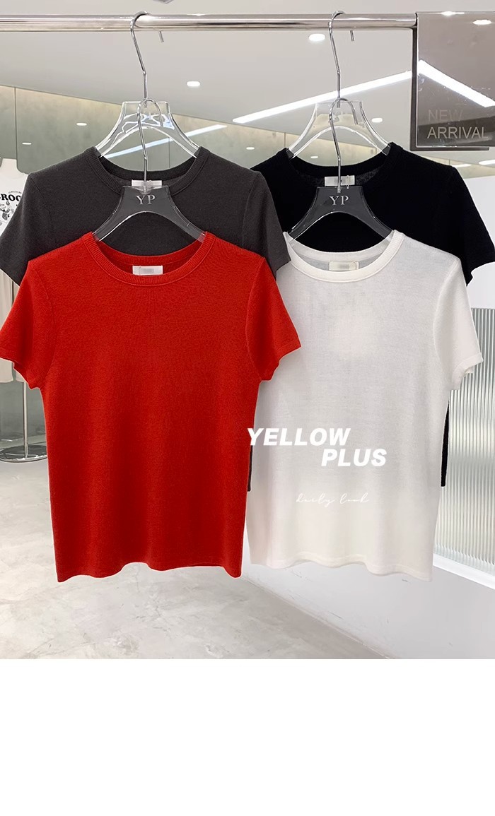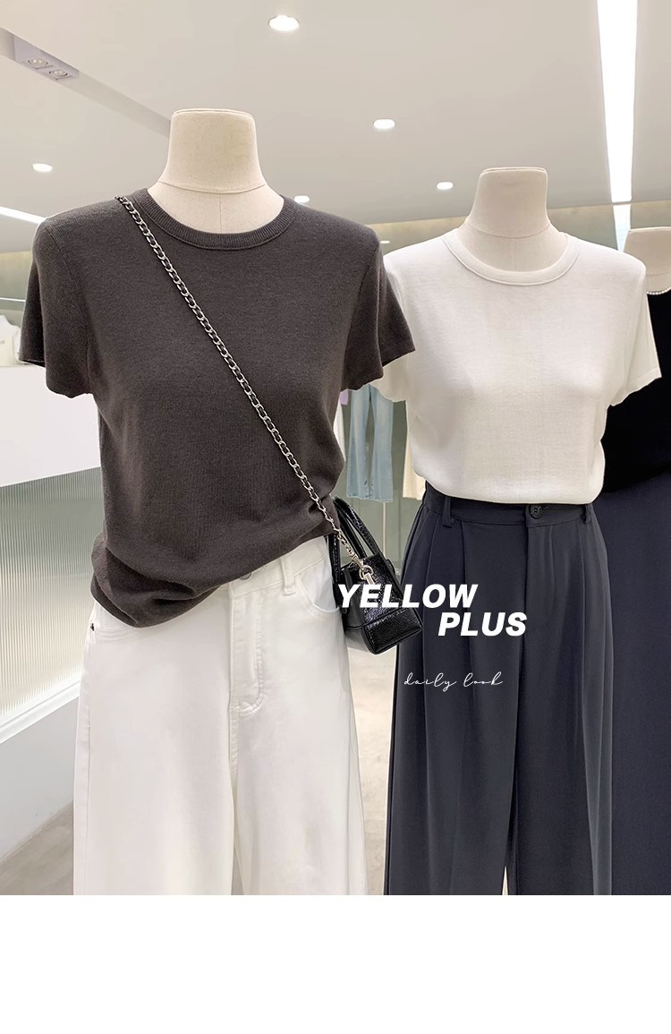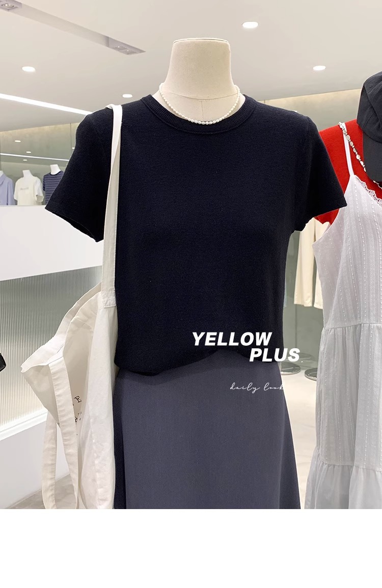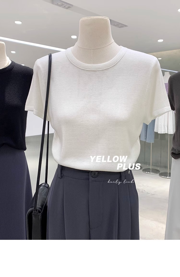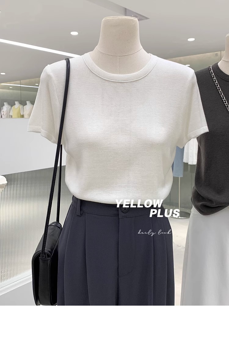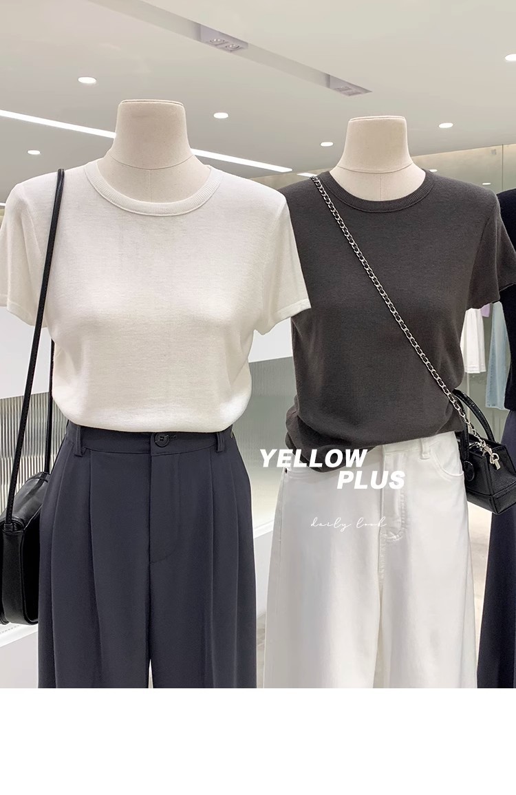 敲舒服!宝藏混纺冰丝针织短袖T恤春夏新款显气质百搭打底上衣女