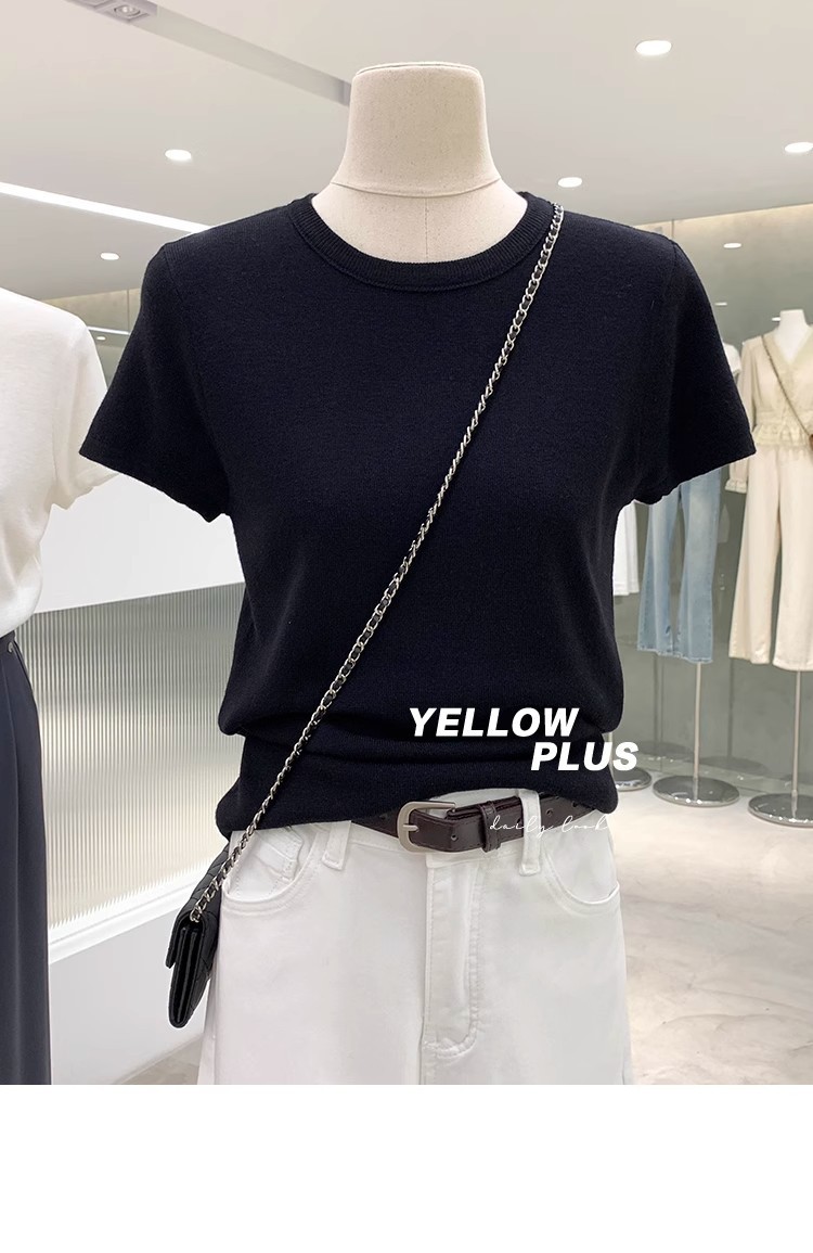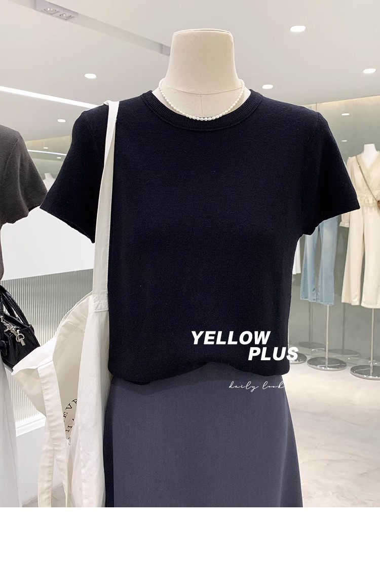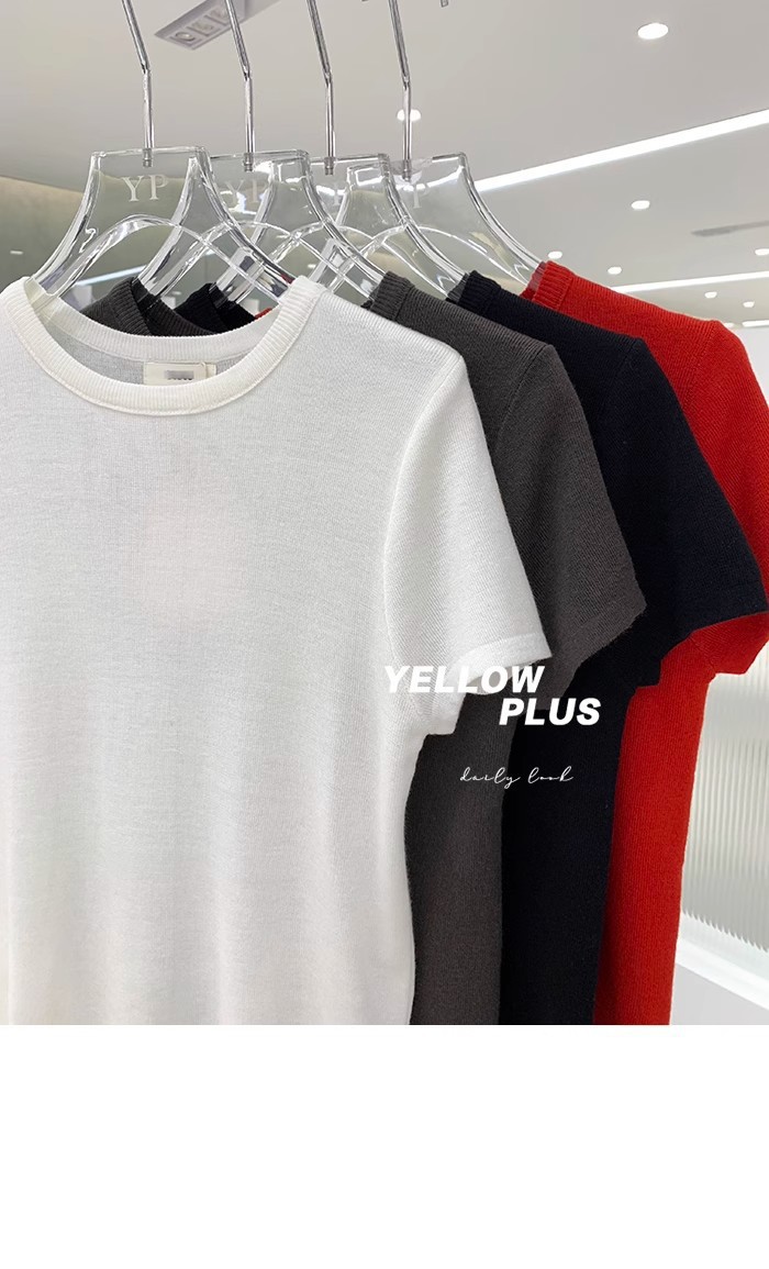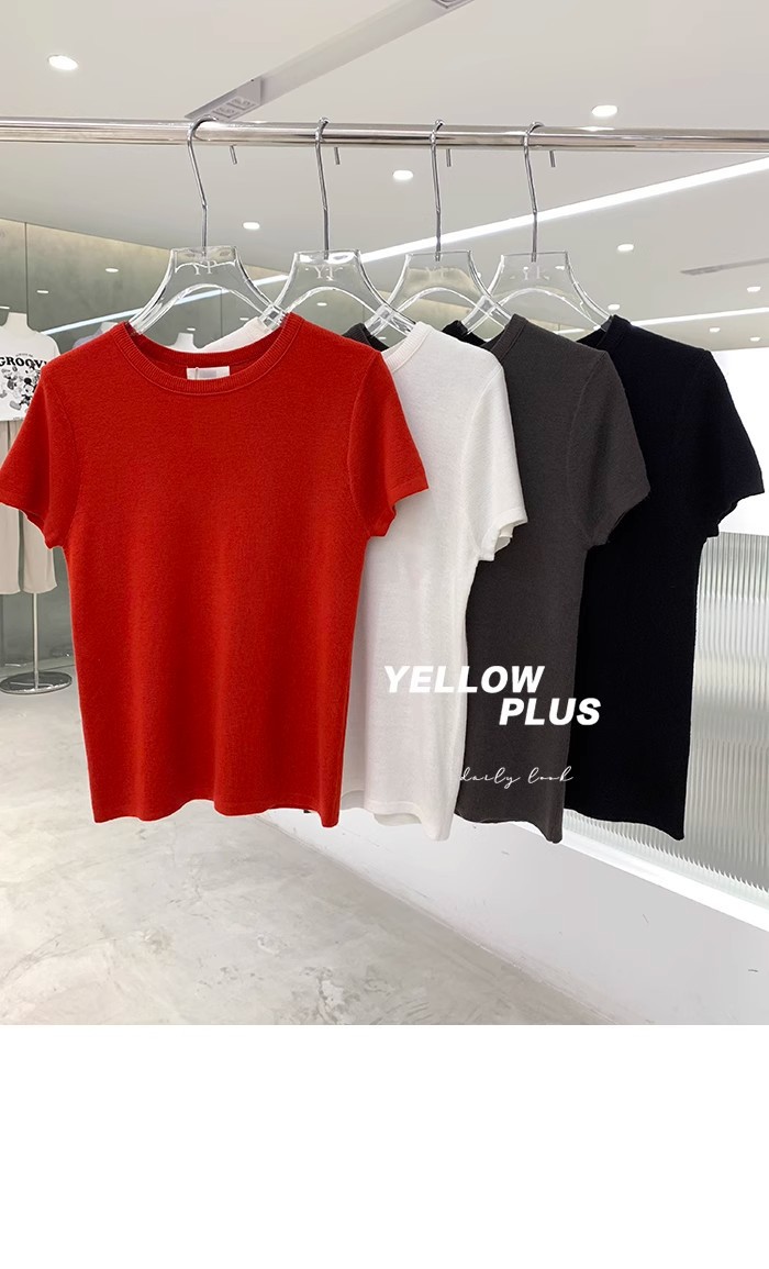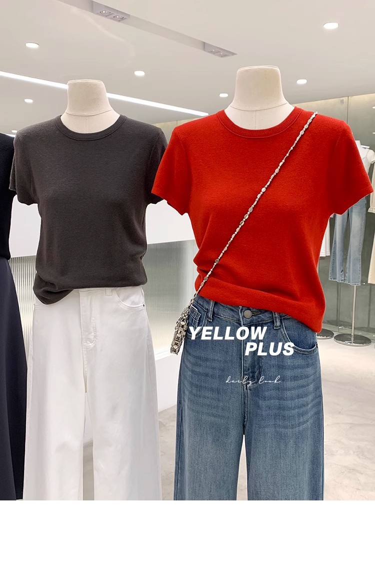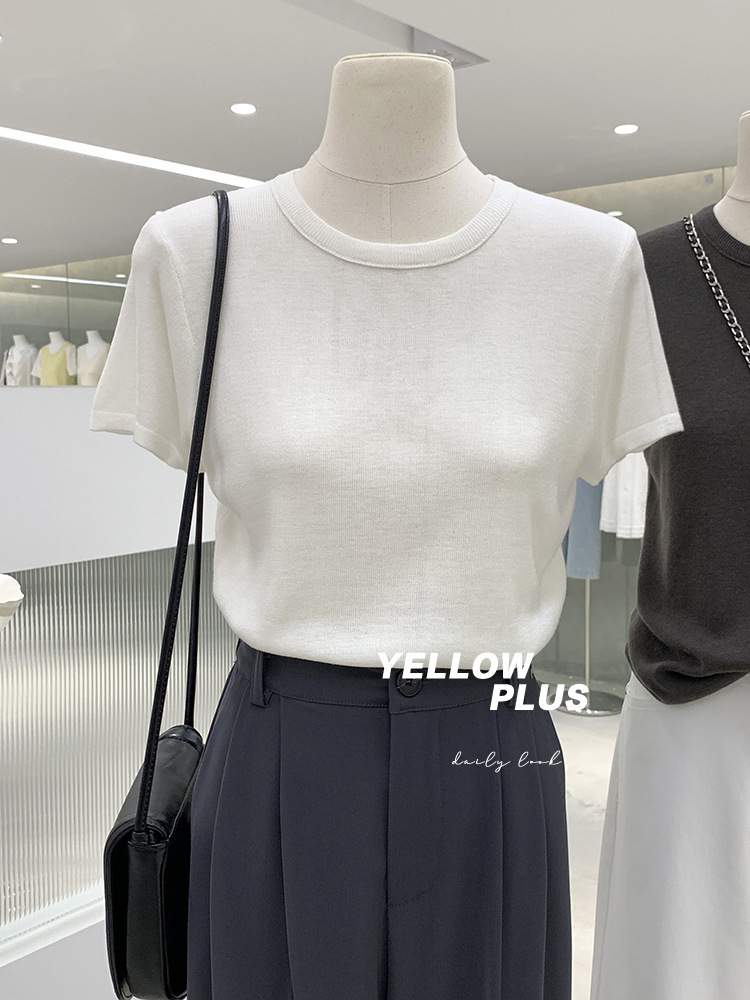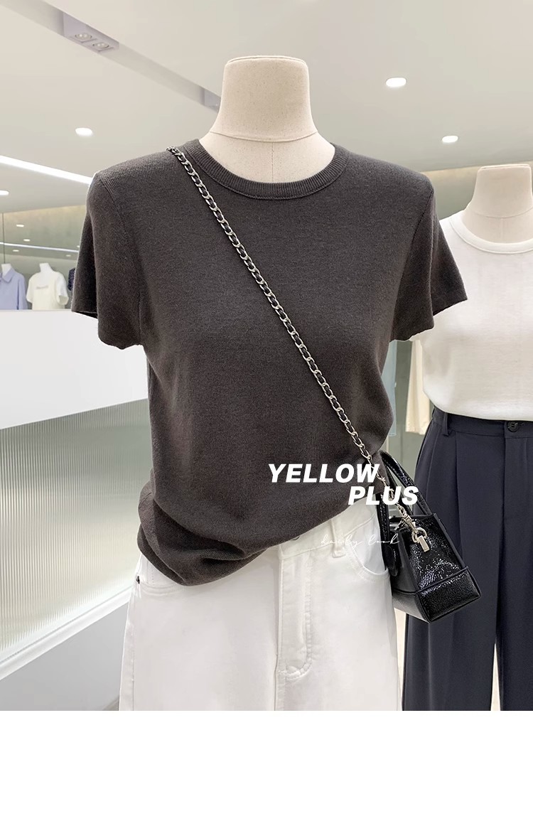 敲舒服!宝藏混纺冰丝针织短袖T恤春夏新款显气质百搭打底上衣女