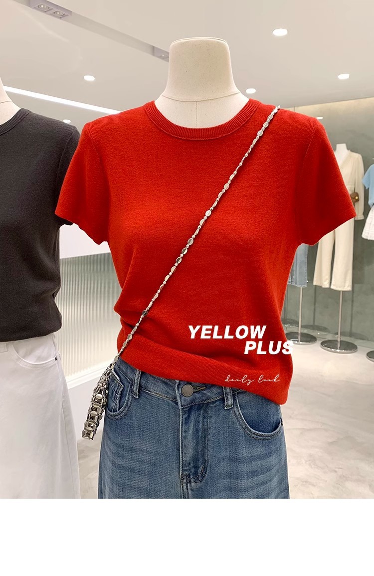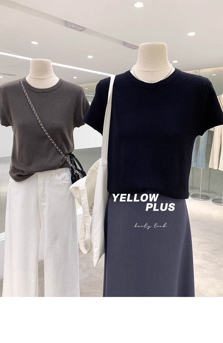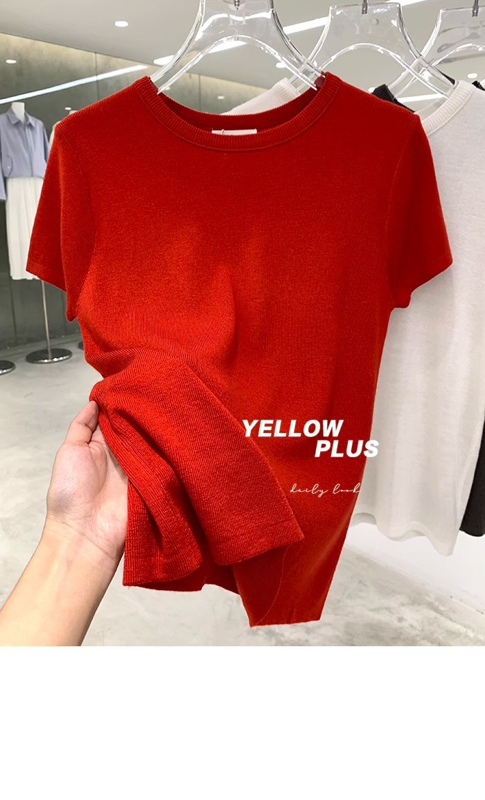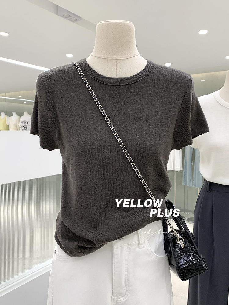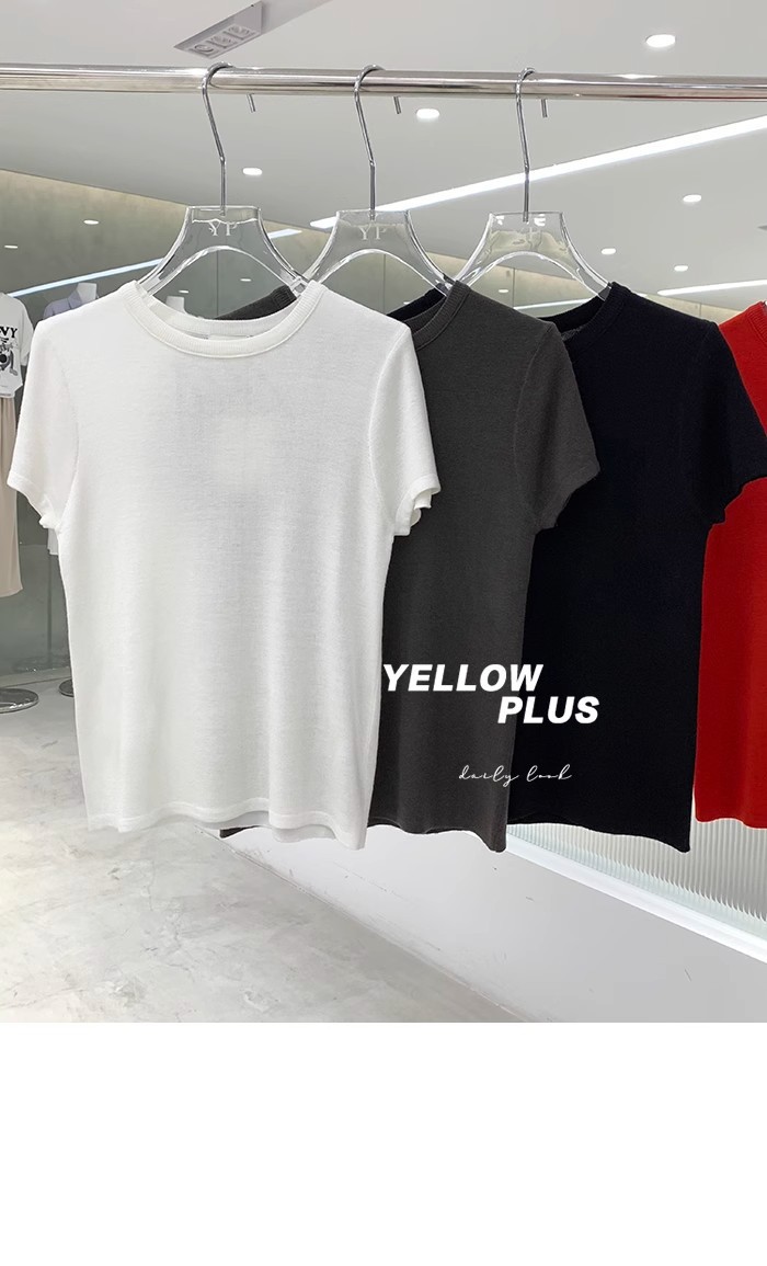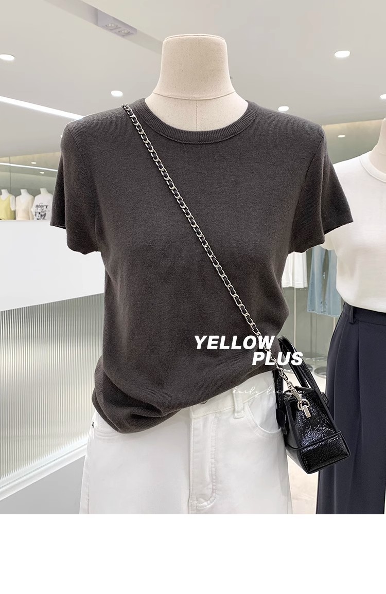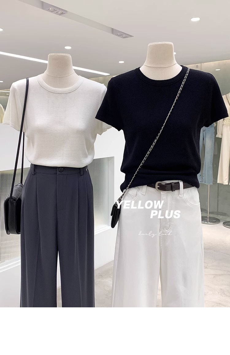 敲舒服!宝藏混纺冰丝针织短袖T恤春夏新款显气质百搭打底上衣女