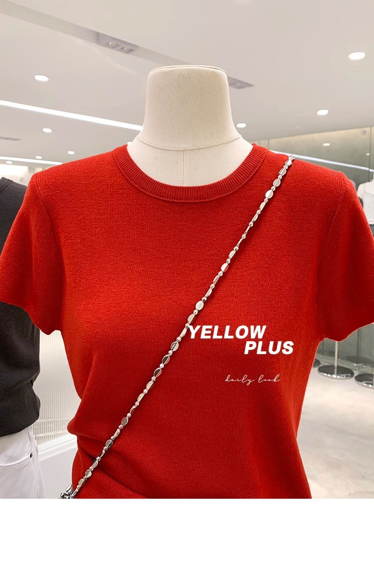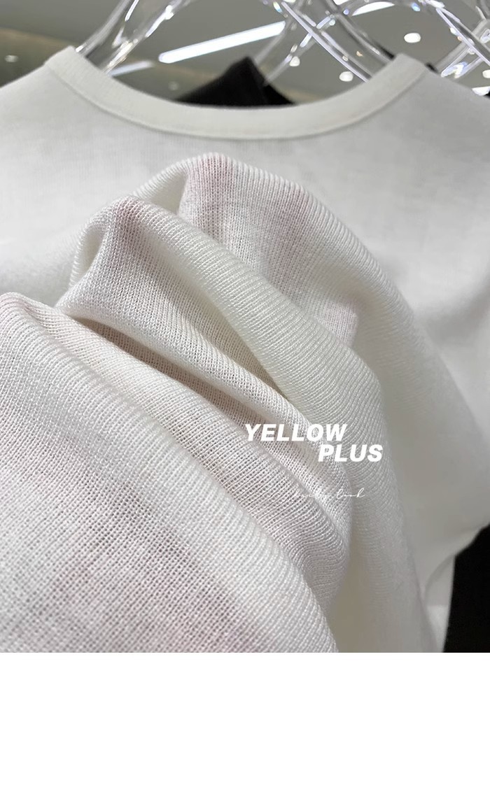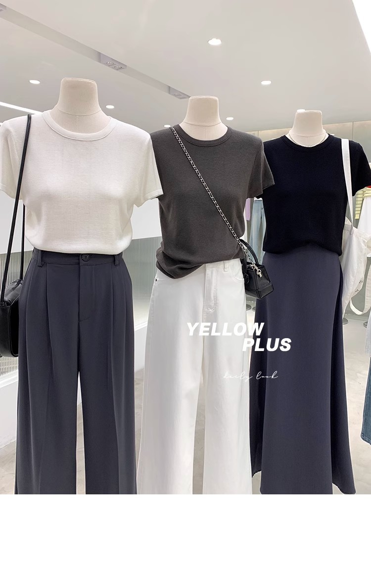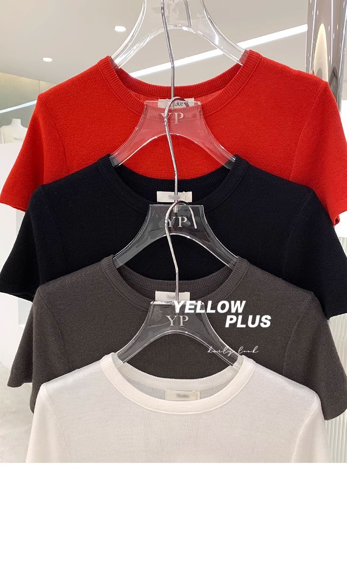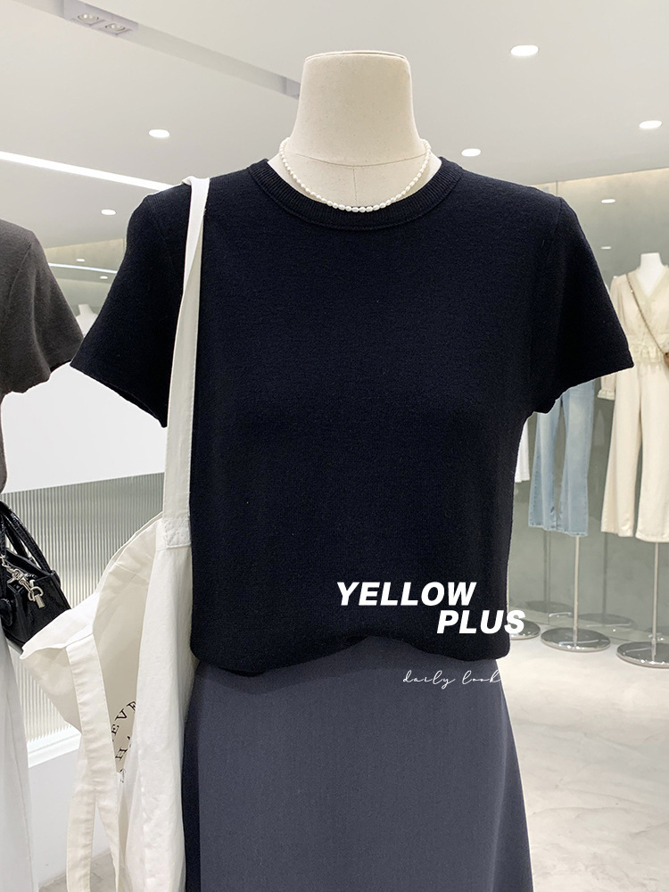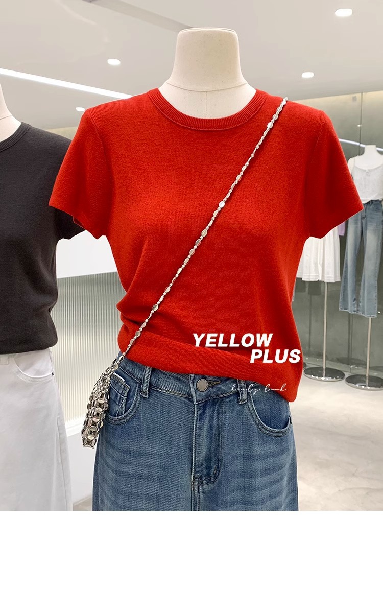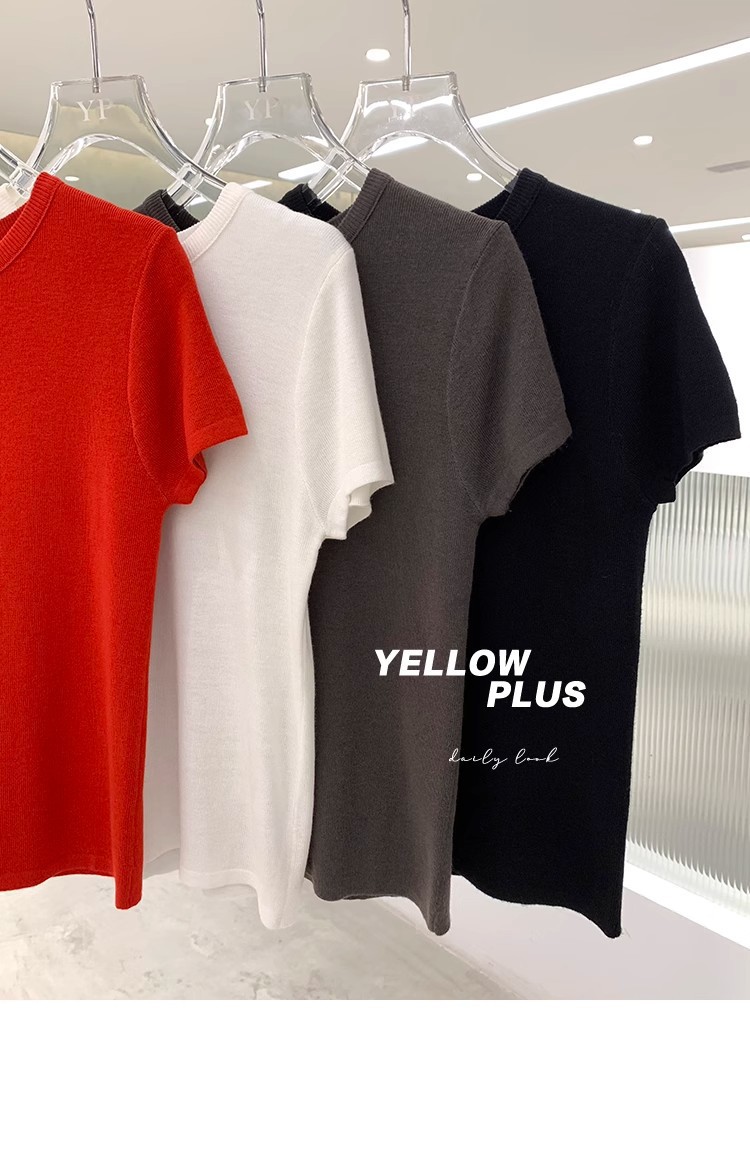 敲舒服!宝藏混纺冰丝针织短袖T恤春夏新款显气质百搭打底上衣女