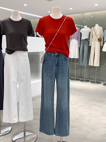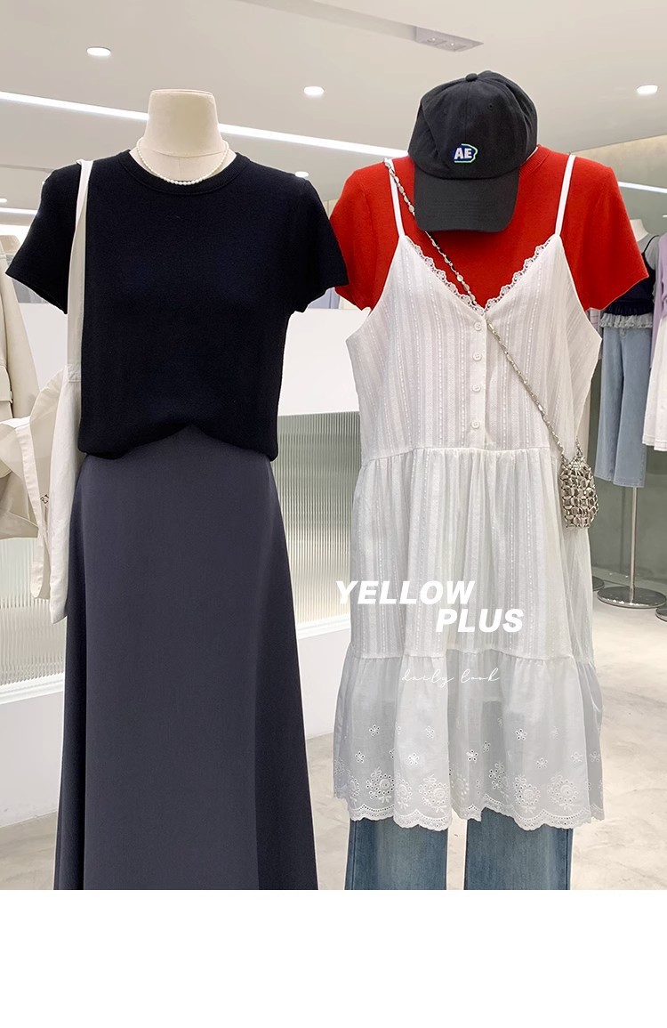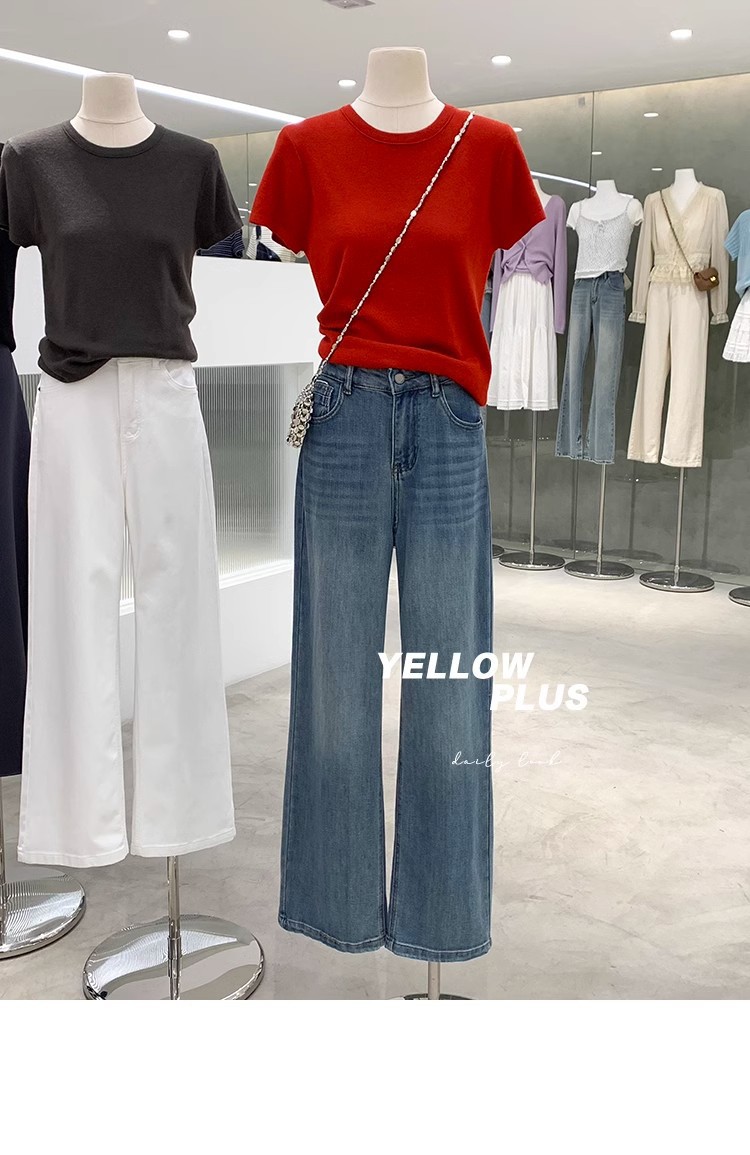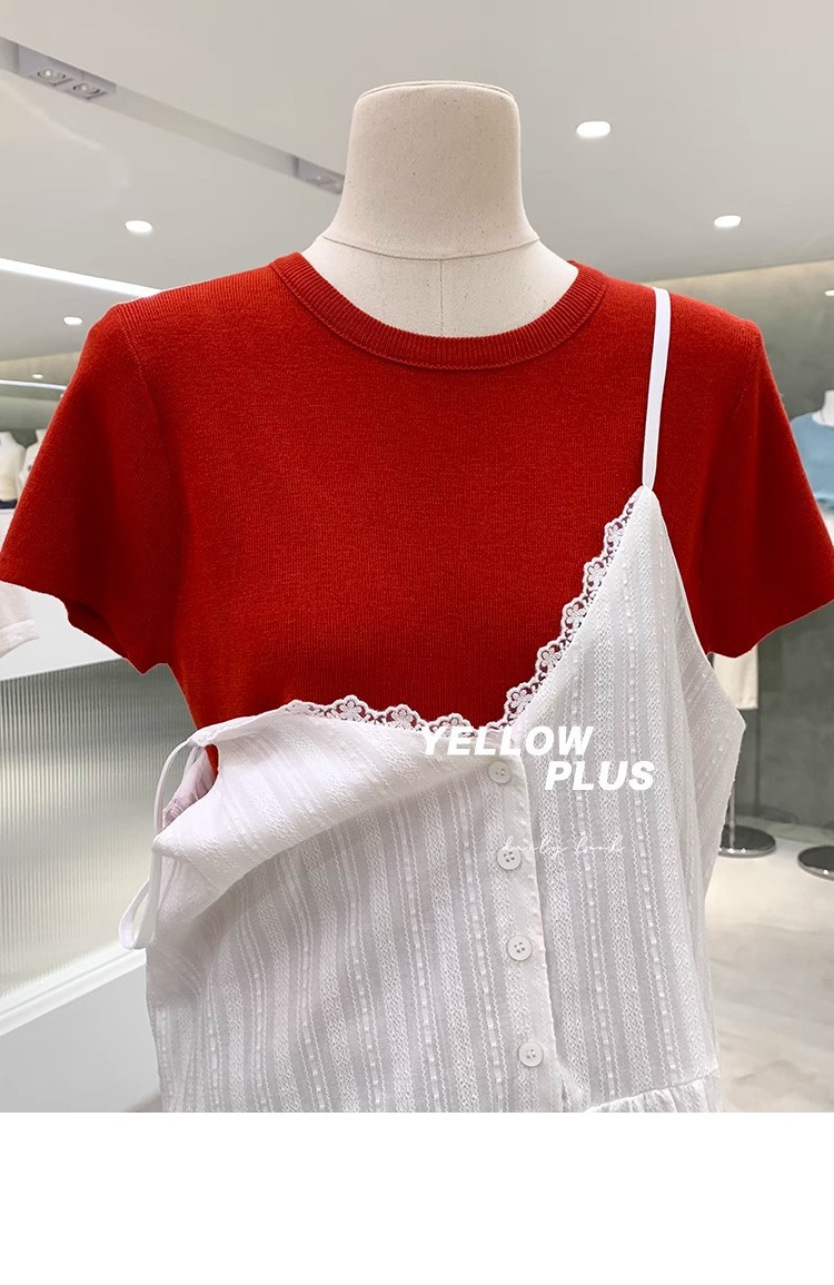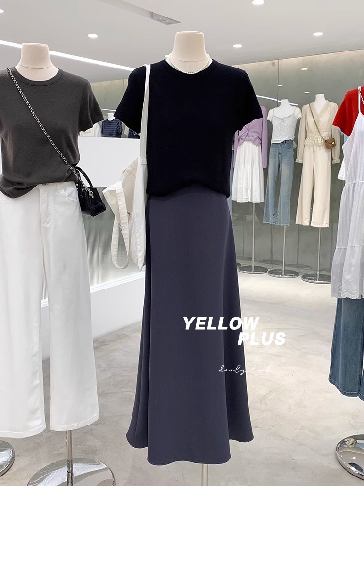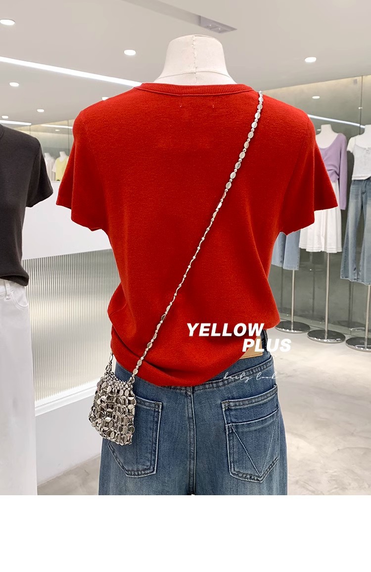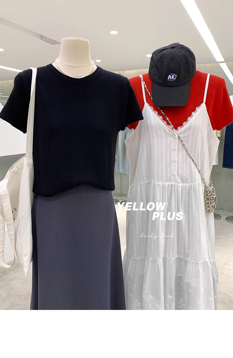 敲舒服!宝藏混纺冰丝针织短袖T恤春夏新款显气质百搭打底上衣女