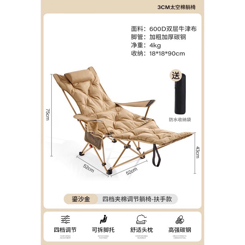 • 카키 [4단계 조절 + 탈부착 가능한 발판] 레저 라운지 의자