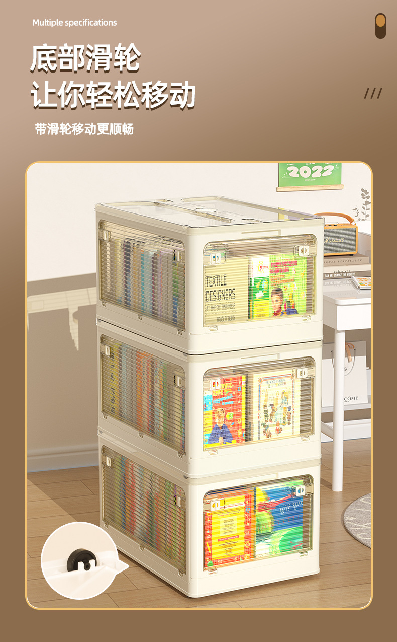 책 저장 상자 바퀴 학생 교실 책 저장 유물 접이식 작은 상자 책 저장 상자를 가진 투명한 책 상자
