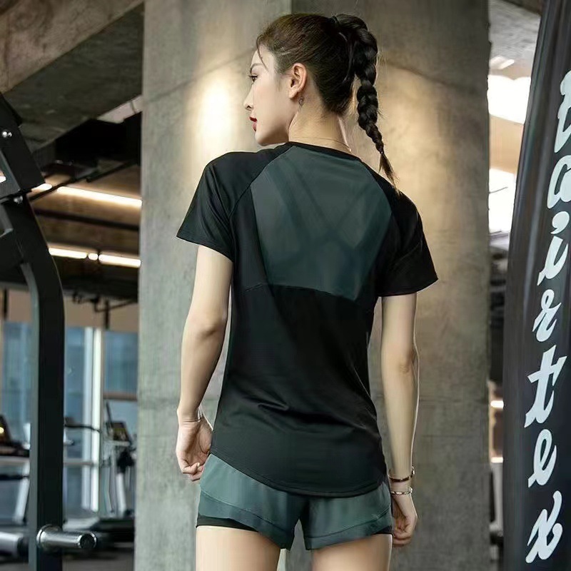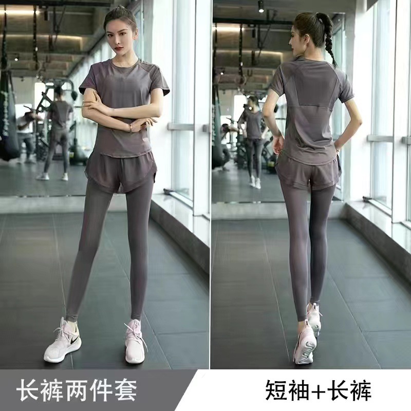 스포츠 세트 여성의 아침 달리기 여름 새로운 요가 옷 여성용 피트니스 옷 탄성 느슨한 얇은 통기성 빠른 건조 옷스토어 가기