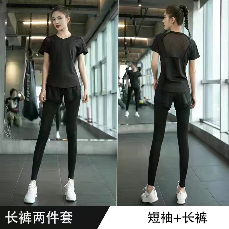 스포츠 세트 여성의 아침 달리기 여름 새로운 요가 옷 여성용 피트니스 옷 탄성 느슨한 얇은 통기성 빠른 건조 옷