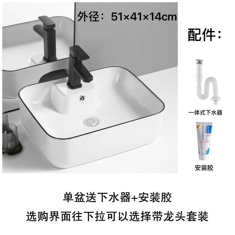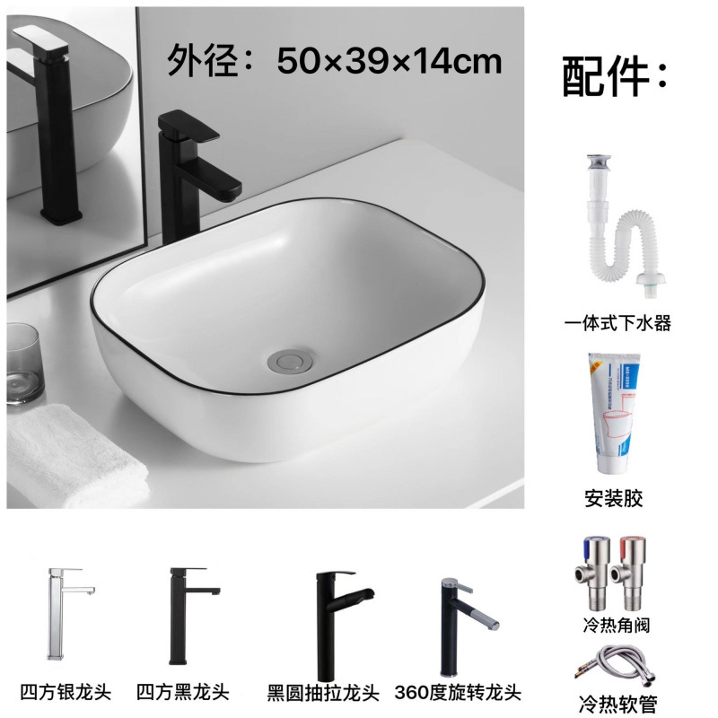 • 50 직사각형 흰색 세면대 - 세면대 + 검정색 사각형 수도꼭지