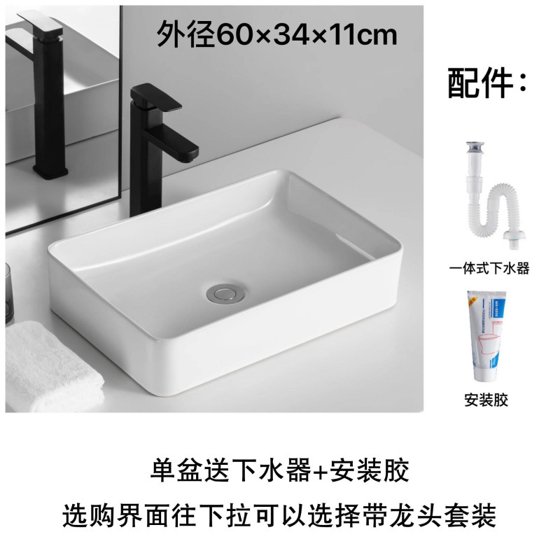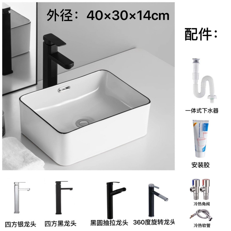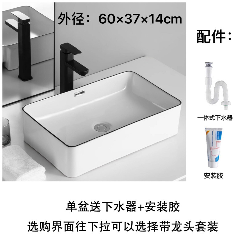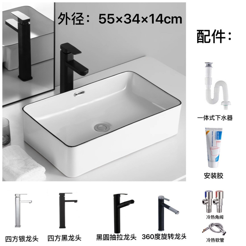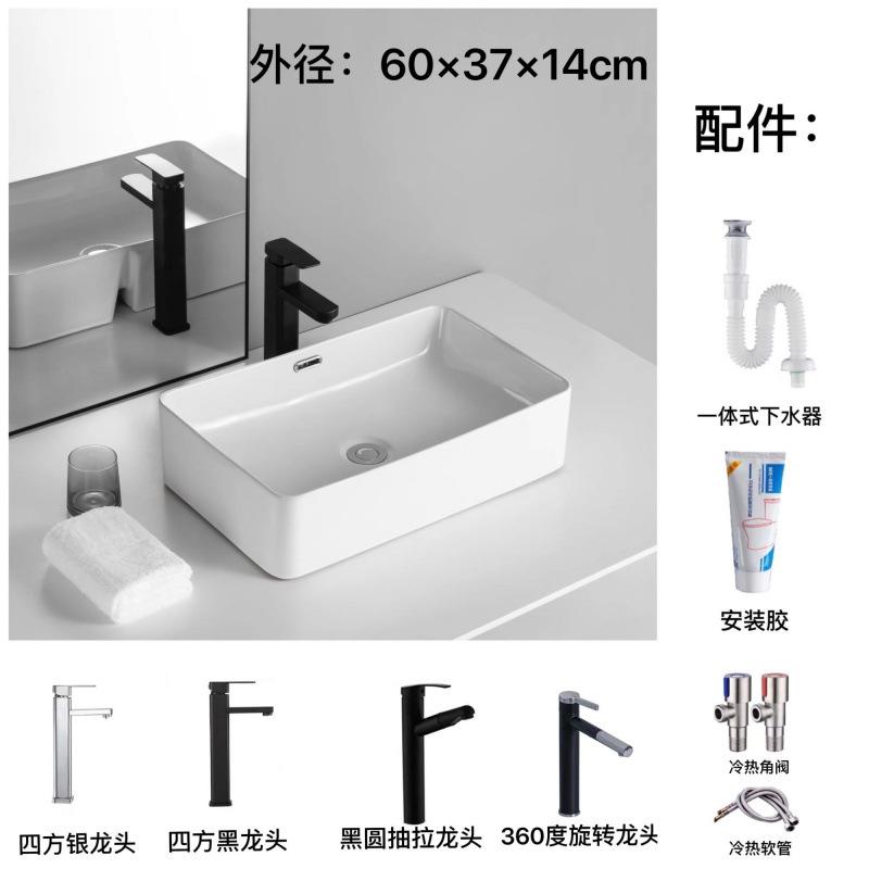 • 60 직사각형 흰색 세면대 - 세면대 + 검정색 사각형 수도꼭지