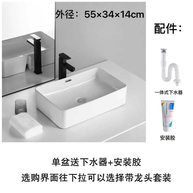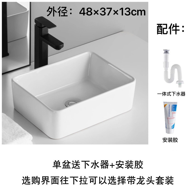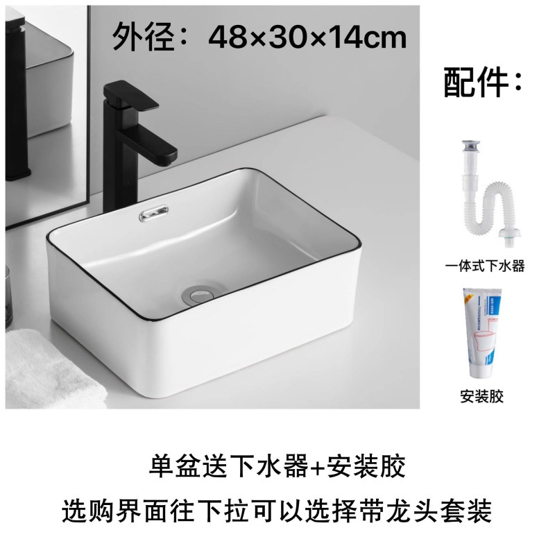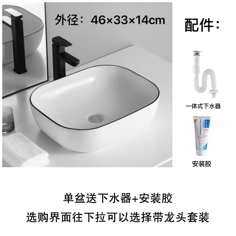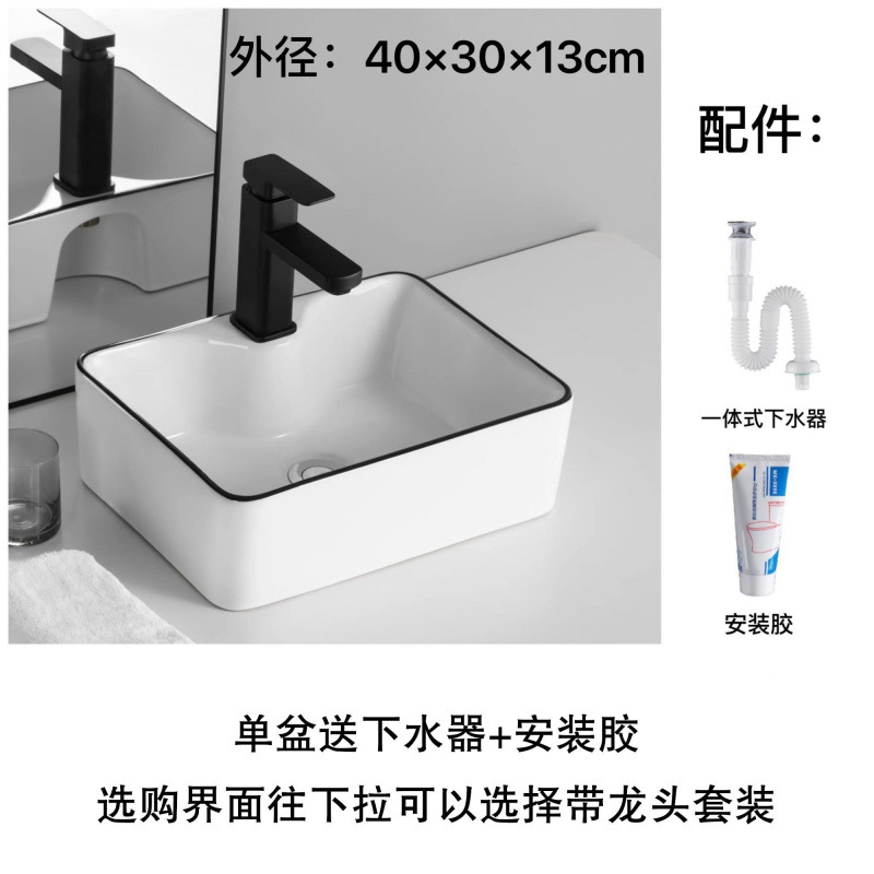 • 60 직사각형 흰색 세면대 - 세면대 + 검정색 사각형 수도꼭지