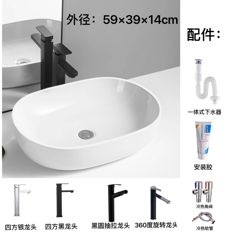 • 173 대형 타원형 흰색 세면대 - 세면대 + 검정색 원형 인출식 수도꼭지