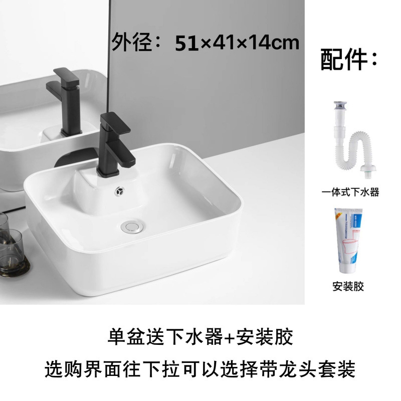 • 50 직사각형 흰색 세면대 - 세면대 + 은색 사각형 수도꼭지