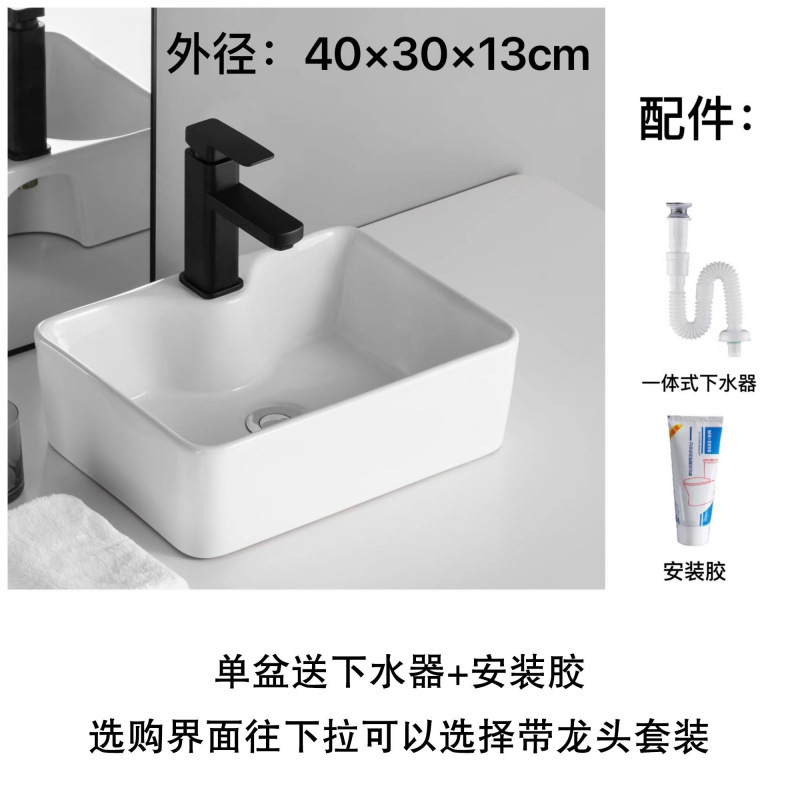 • 60 직사각형 흰색 세면대 - 세면대 + 은색 사각형 수도꼭지