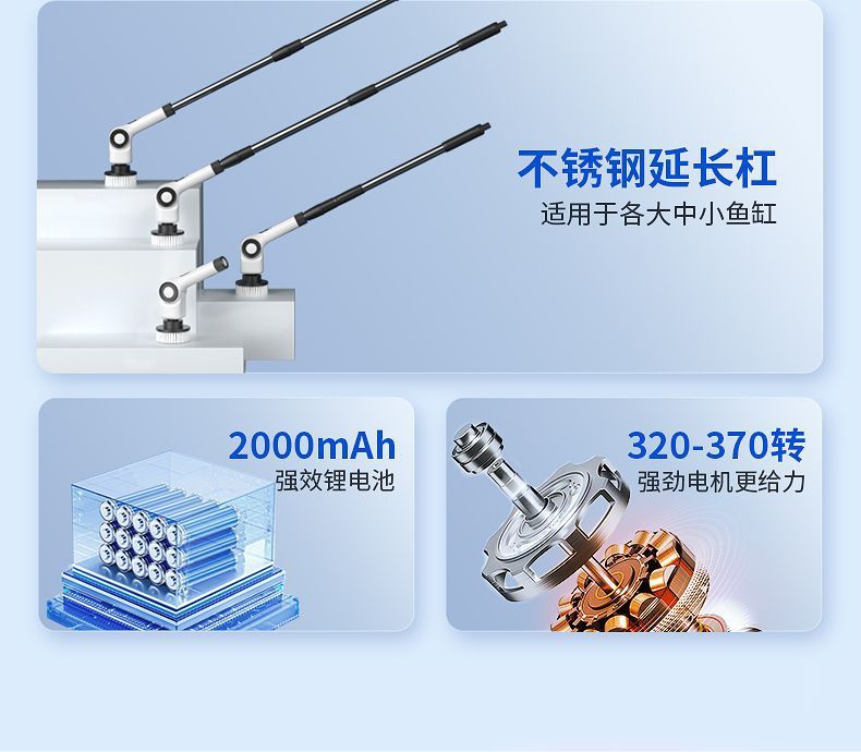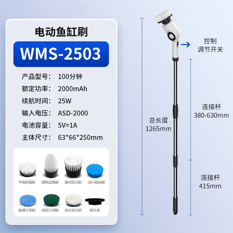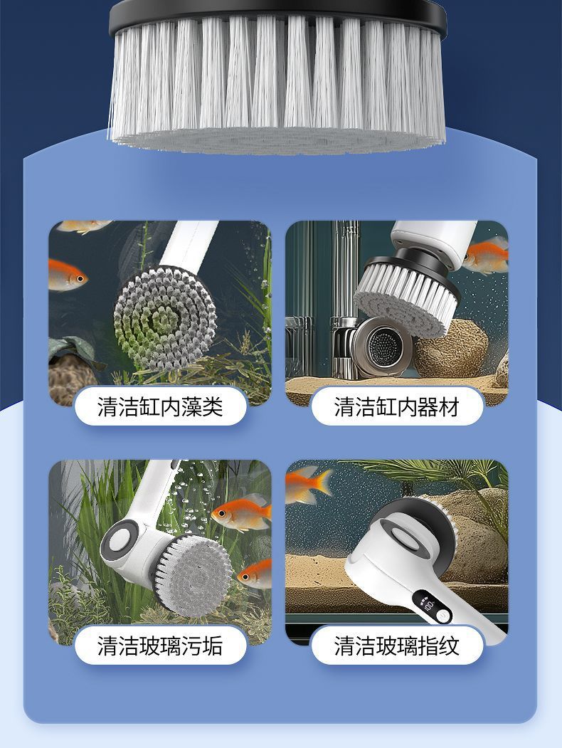 전기 수조 청소 브러시, 방수 및 침수 방지 수조 유물, 긴 손잡이 청소 내부 벽 유리 조류 긁기 및 조류 제거 도구