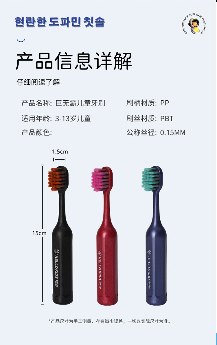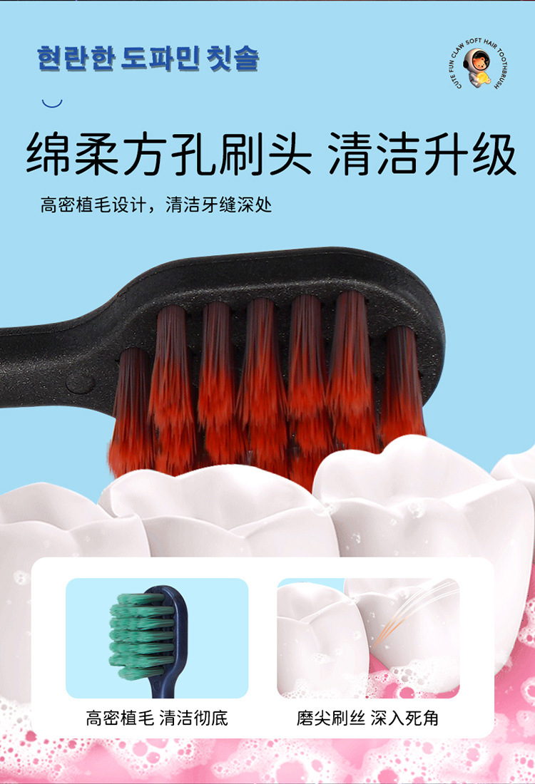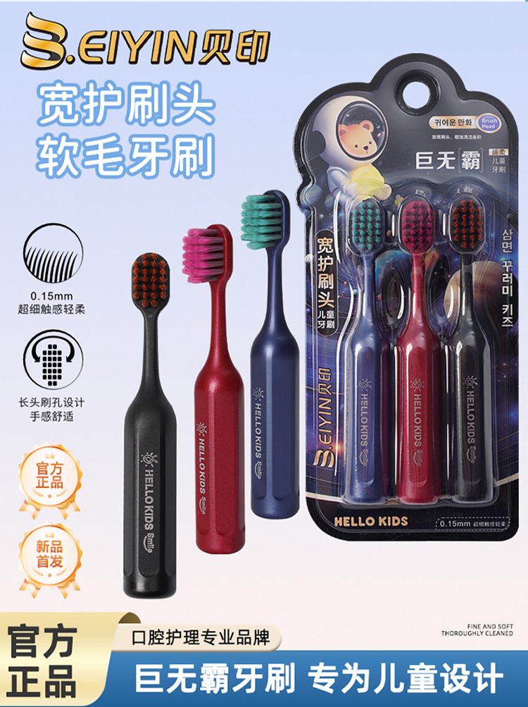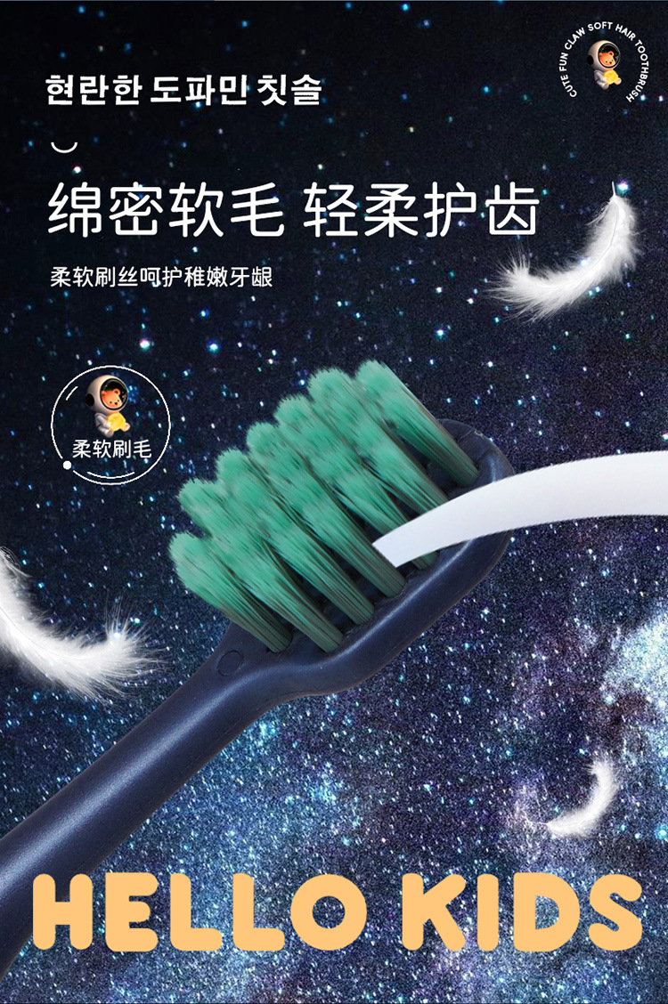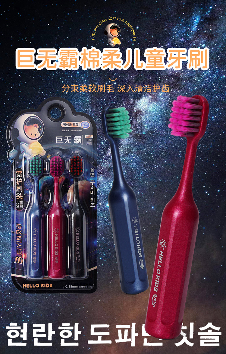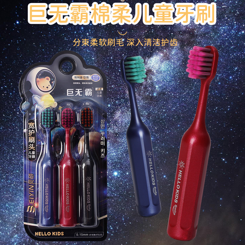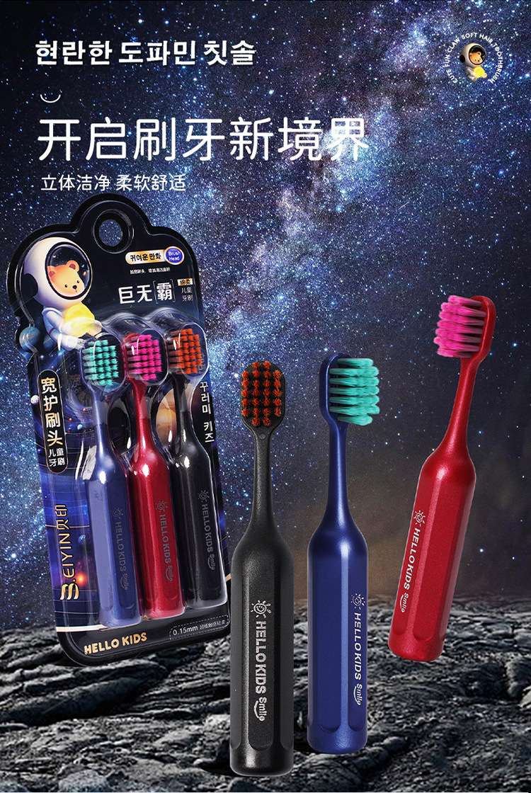 고품질 금박 어린이 칫솔 부드러운 강모 가정용 3-12 세 아기 치아 교환 기간 와이드 헤드 칫솔 도매 3 팩