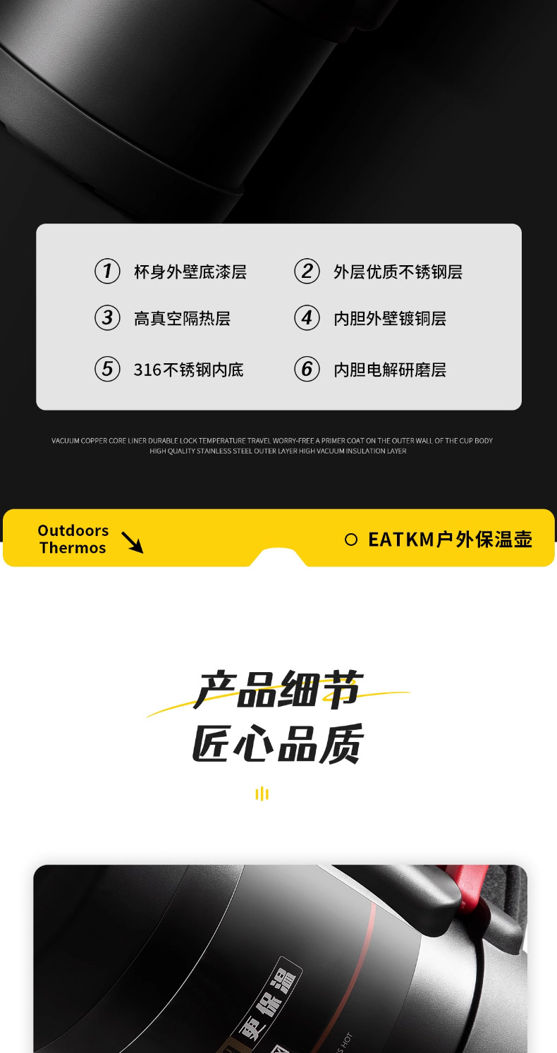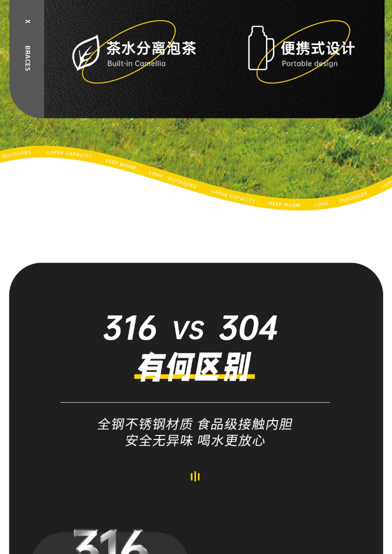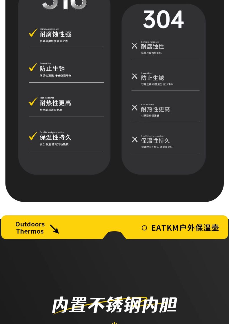 • [316 스테인레스 스틸] 기질 블랙 1.7L (1.7kg 물) 스트랩 + 긴 차 칸 포함