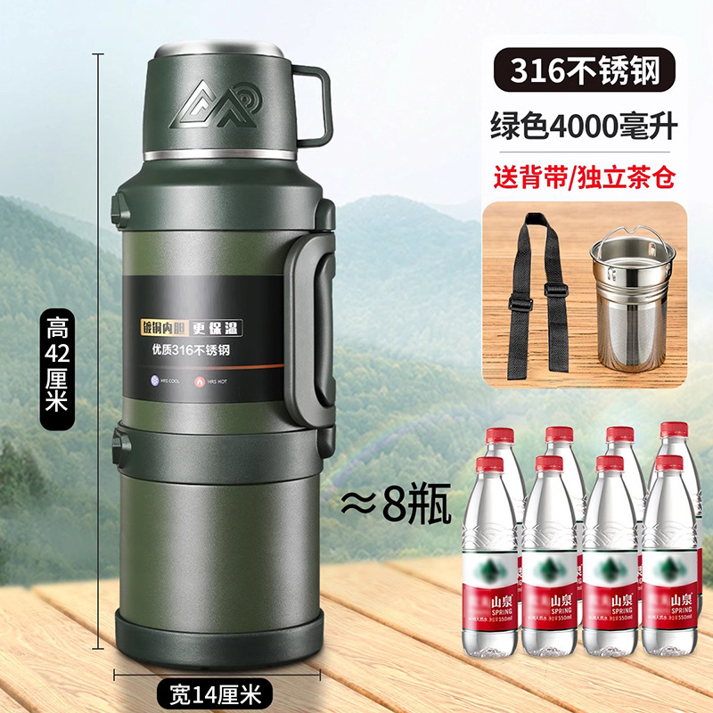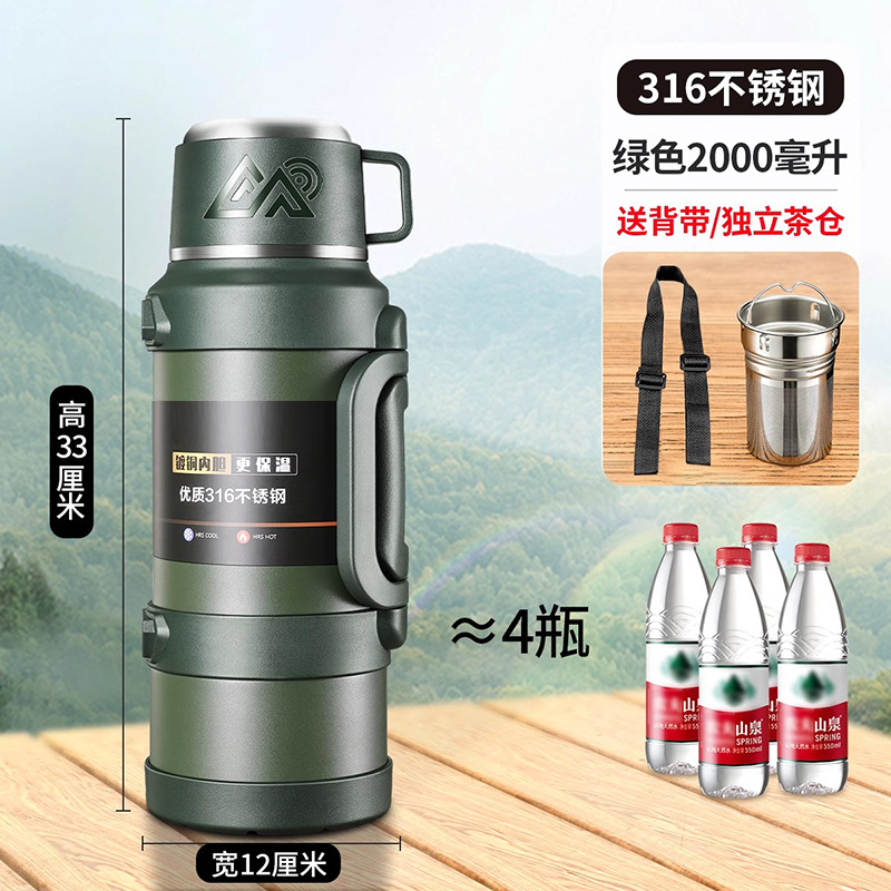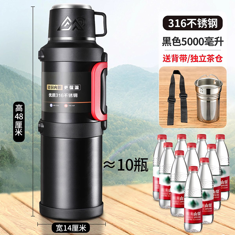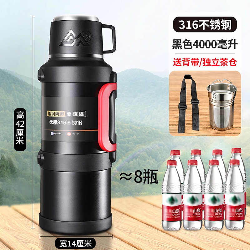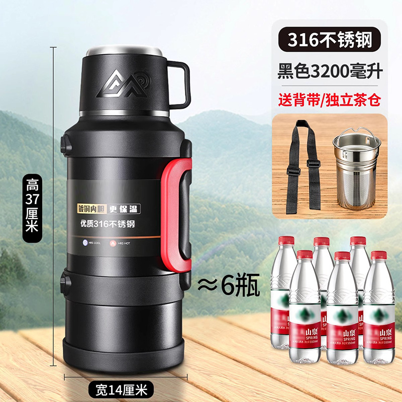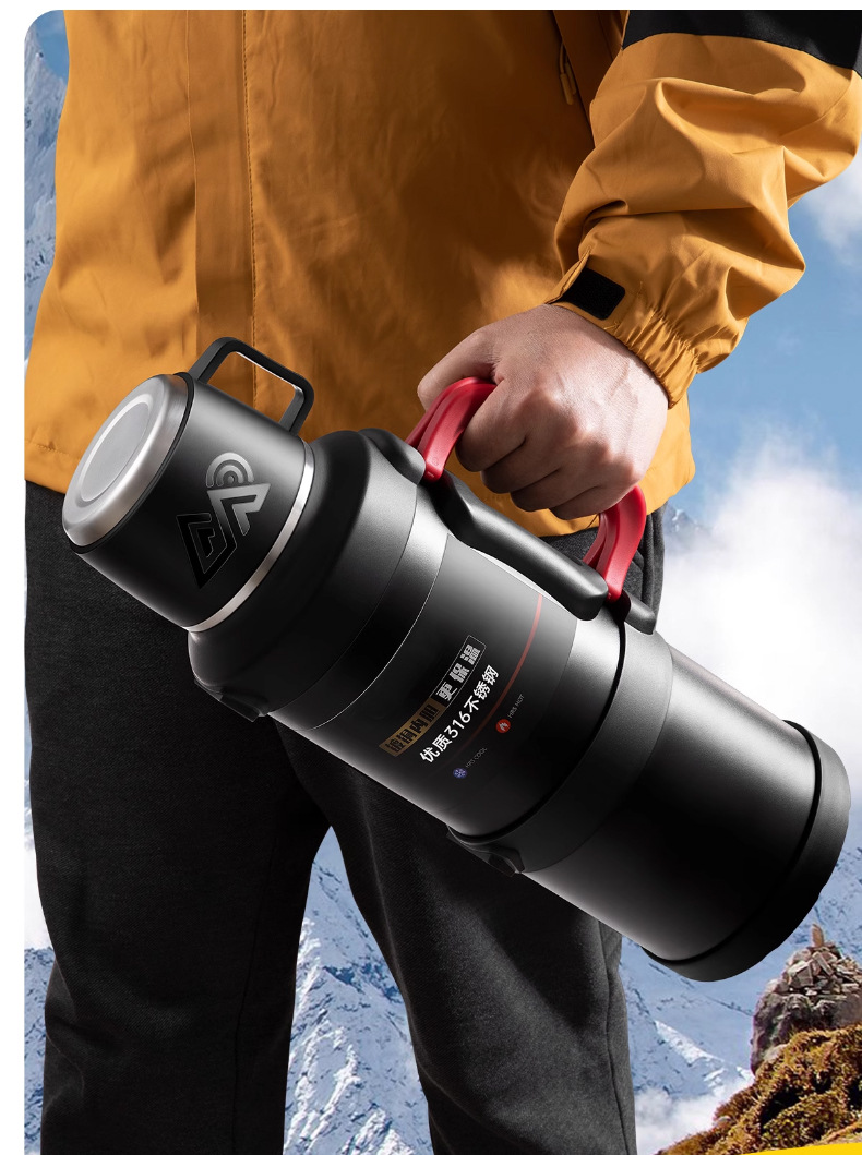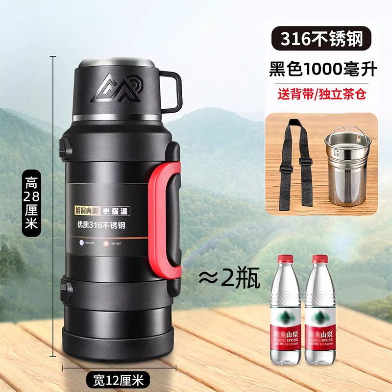 여행 냄비 대용량 보온병 냄비 316 스테인레스 스틸 라이너 보온병 야외 자동차 온수 병 열 절연 물 컵