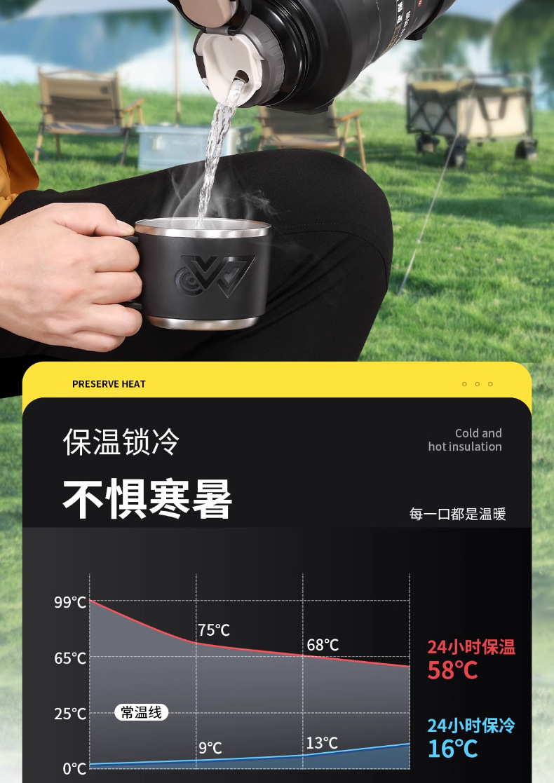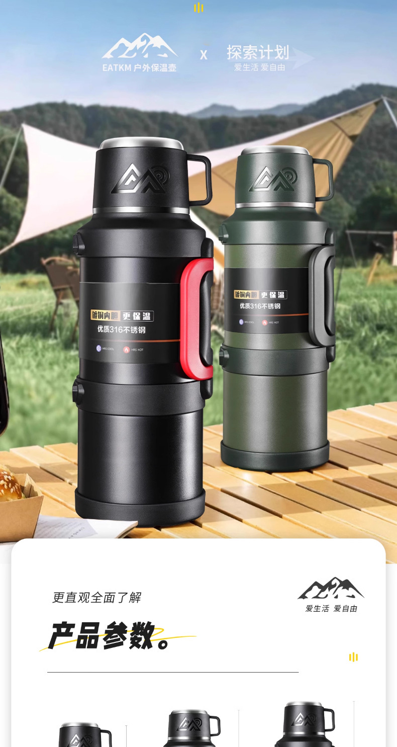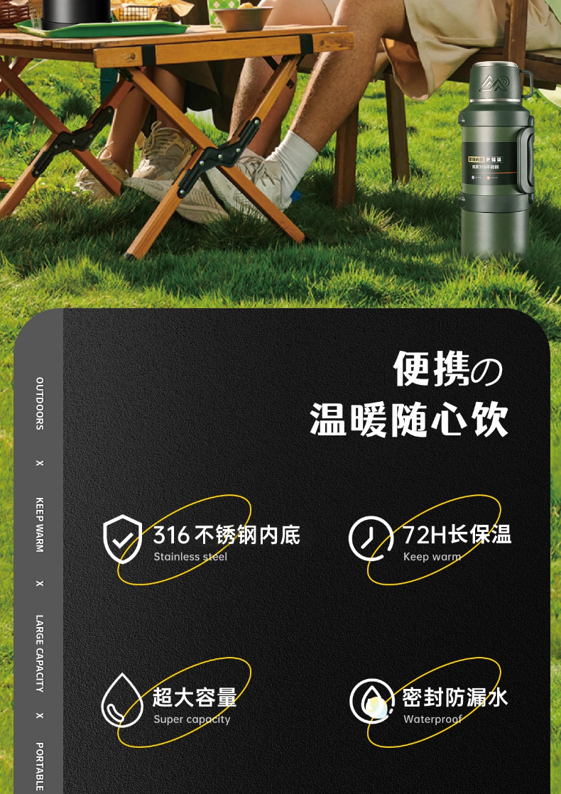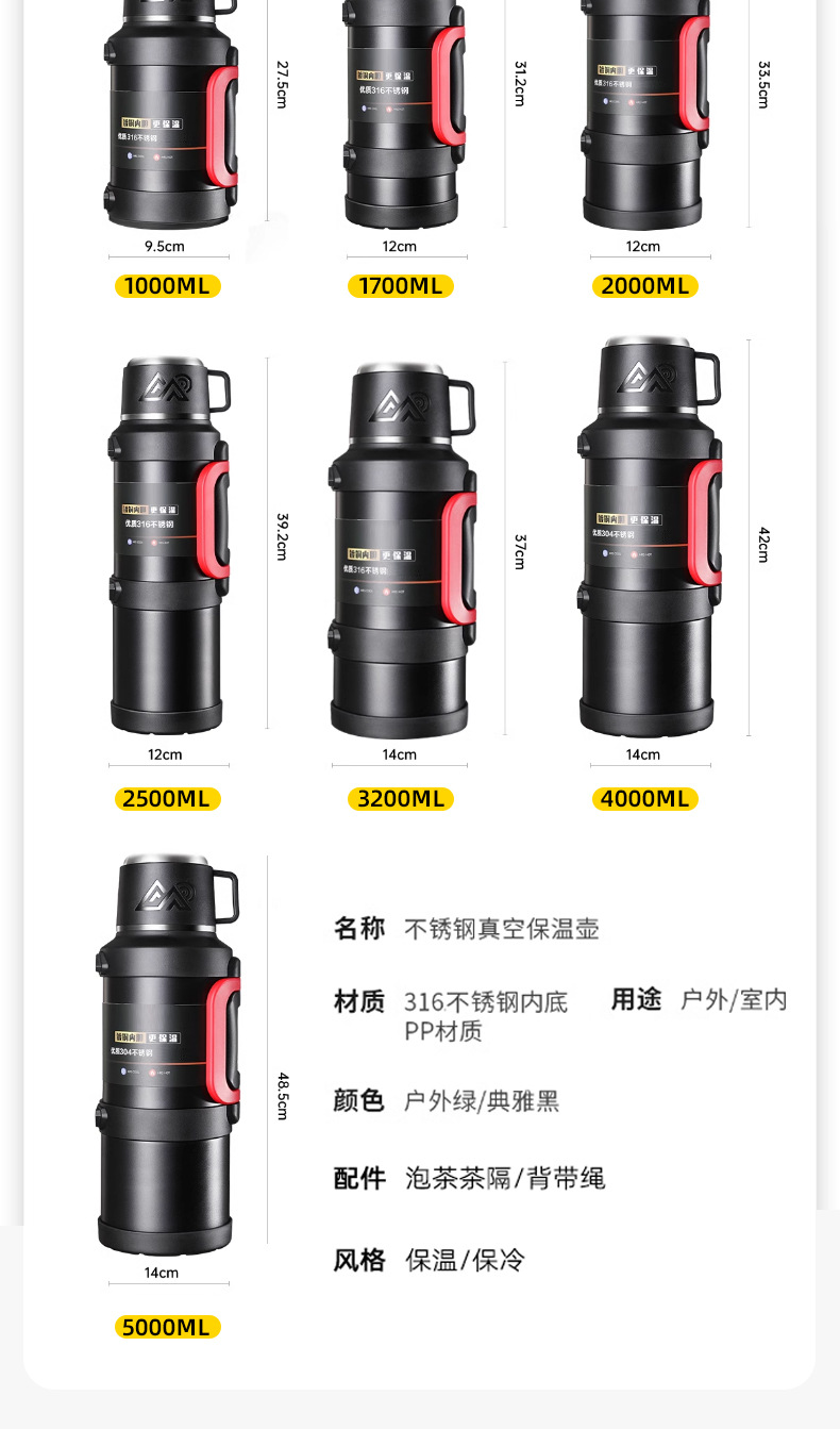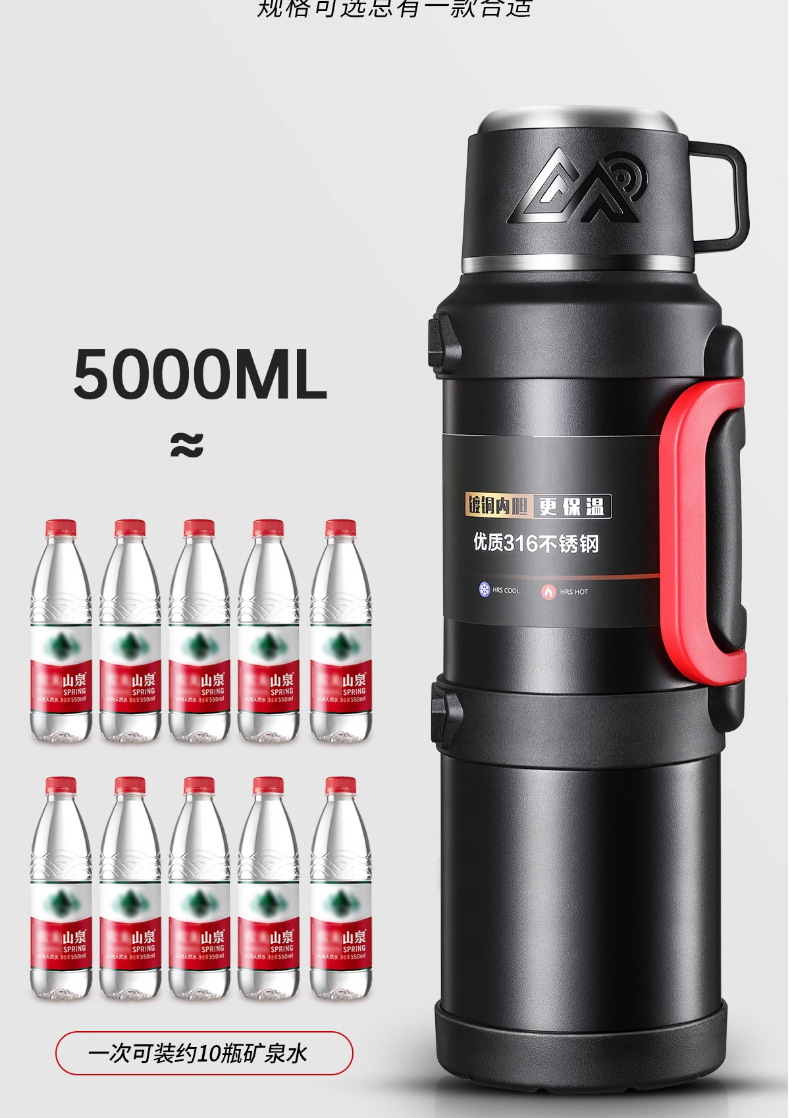 여행 냄비 대용량 보온병 냄비 316 스테인레스 스틸 라이너 보온병 야외 자동차 온수 병 열 절연 물 컵