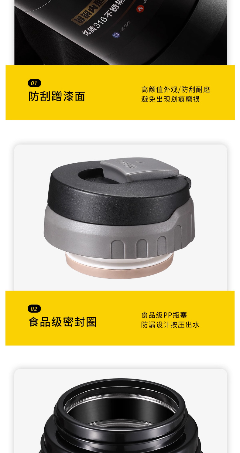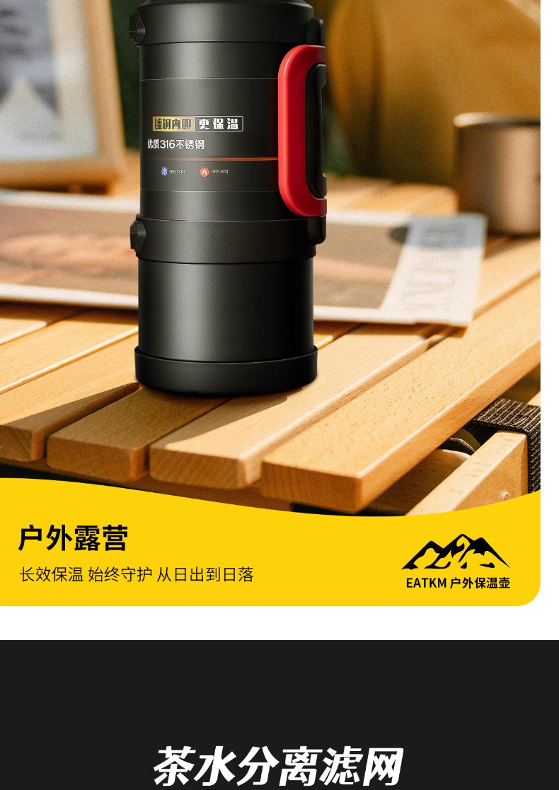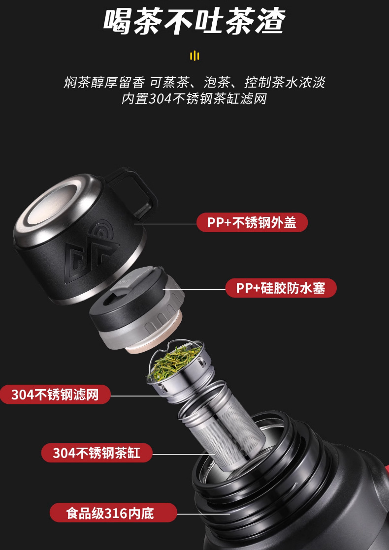 • [316 스테인레스 스틸] 기질 블랙 2.5L (2.5kg 물) 스트랩 + 긴 차 칸 포함