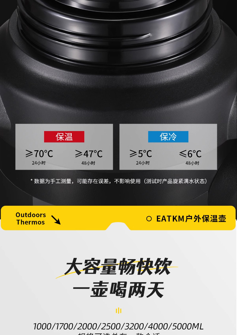 • [316 스테인레스 스틸] 기질 블랙 3.2L (3kg 물) 스트랩 + 긴 차 칸 포함