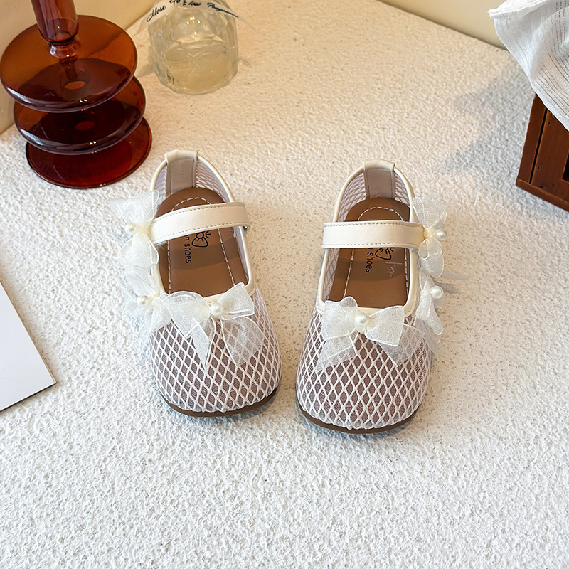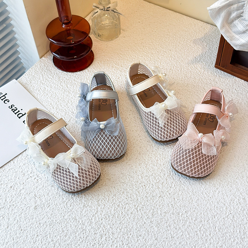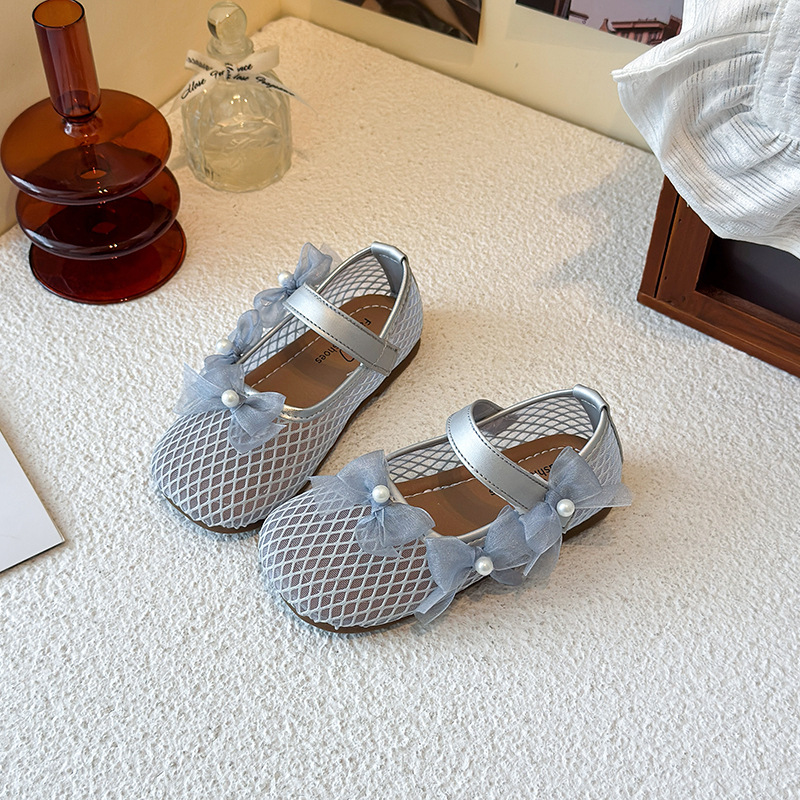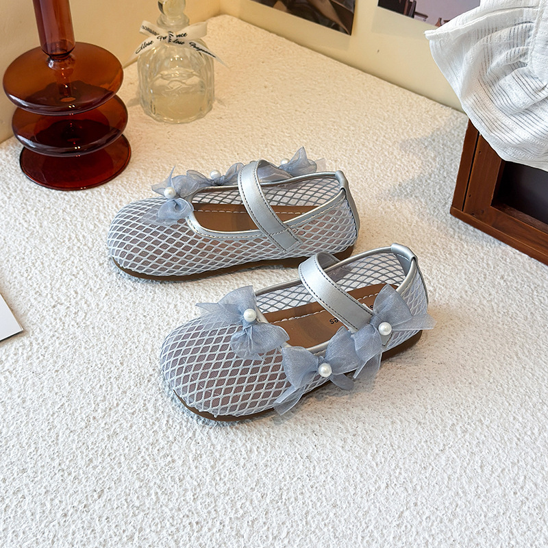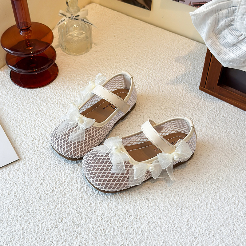 Ins 프렌치 보우 메쉬 신발 2025 여름 새로운 한국 스타일 소녀의 부드러운 바닥 공주 신발 통기성 메쉬 샌들