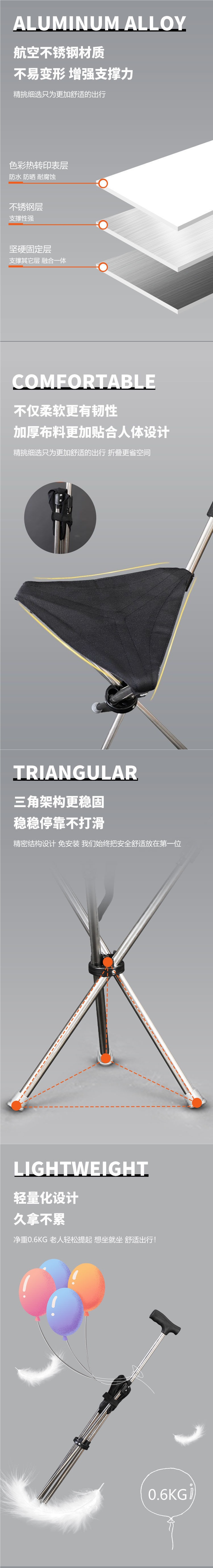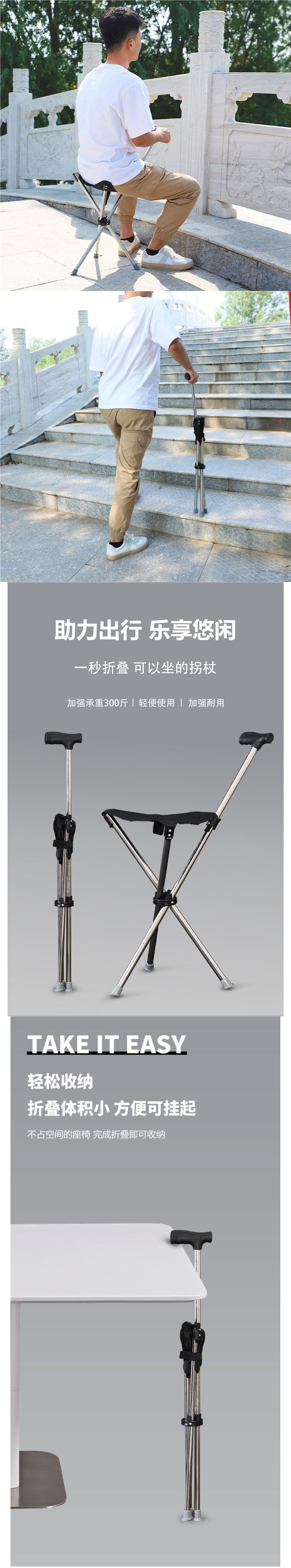 Yuanyi 지팡이는 낙하 방지 기능이 있고 두껍고 앉을 수 있으며 접이식 휴대용 지팡이 의자, 경량 삼각형 의자, 앉을 수 있는 텔레스코픽 등산 지팡이