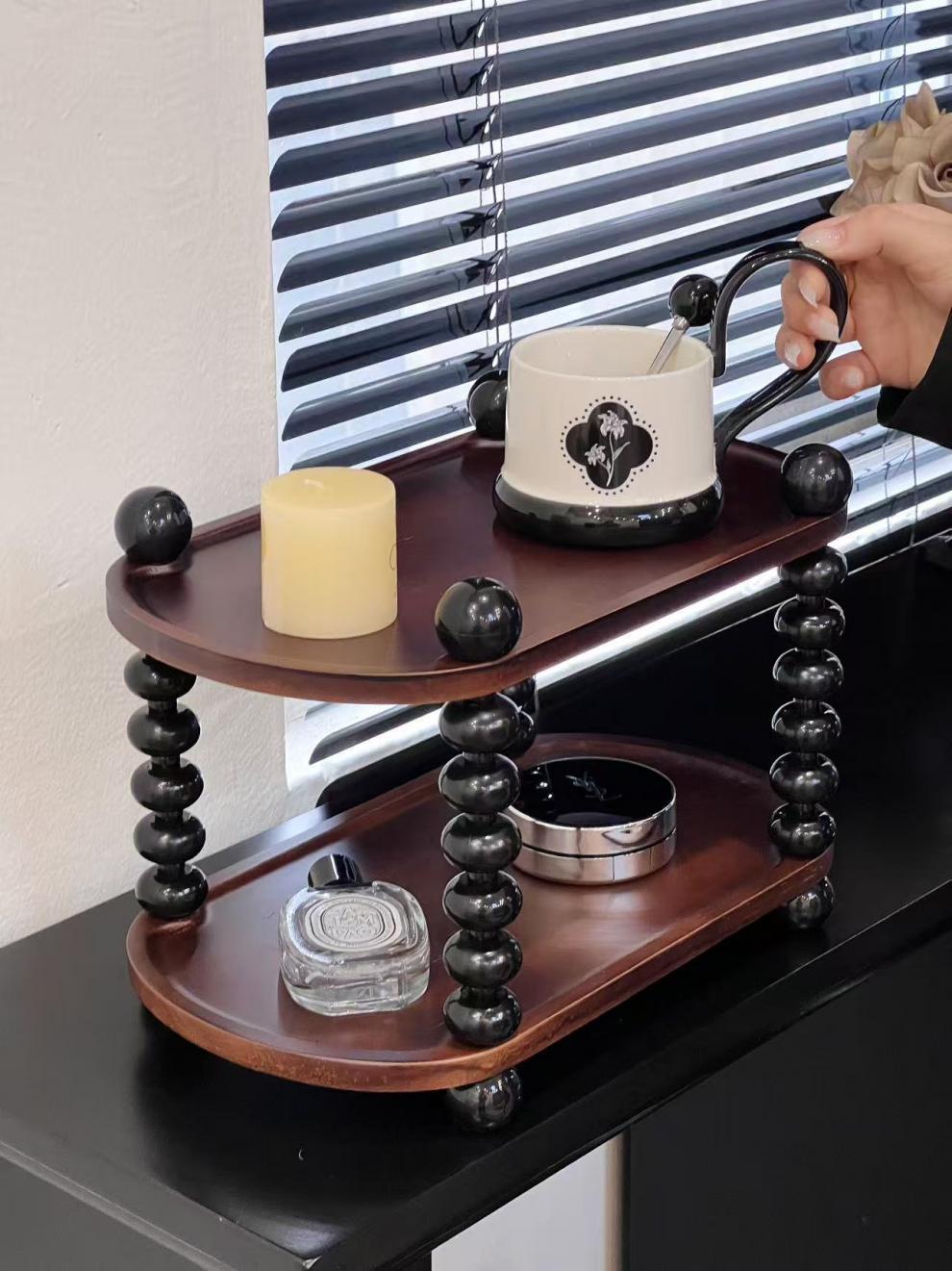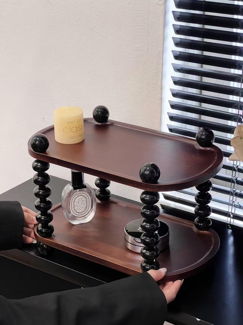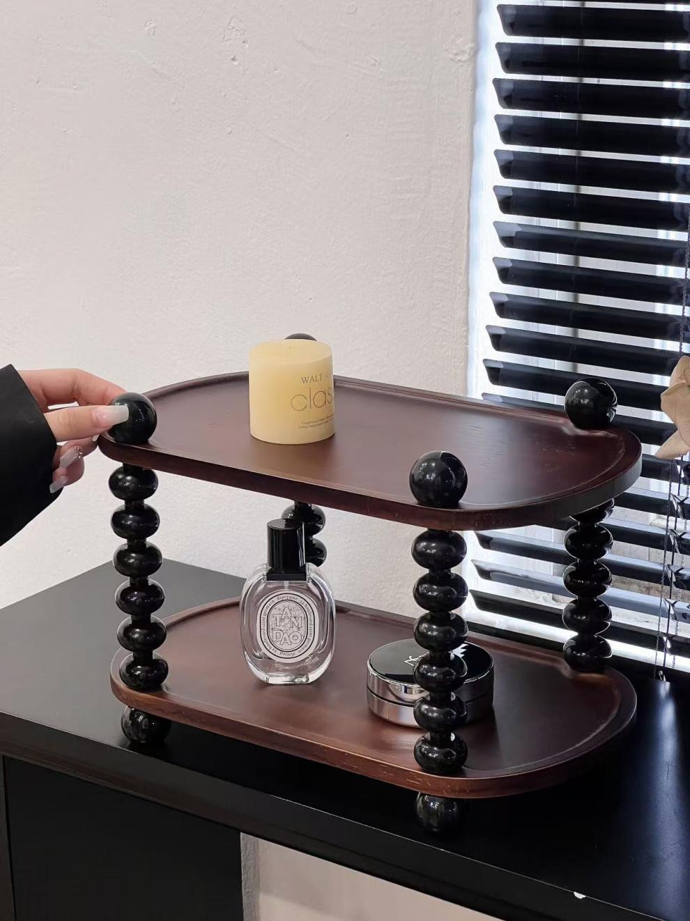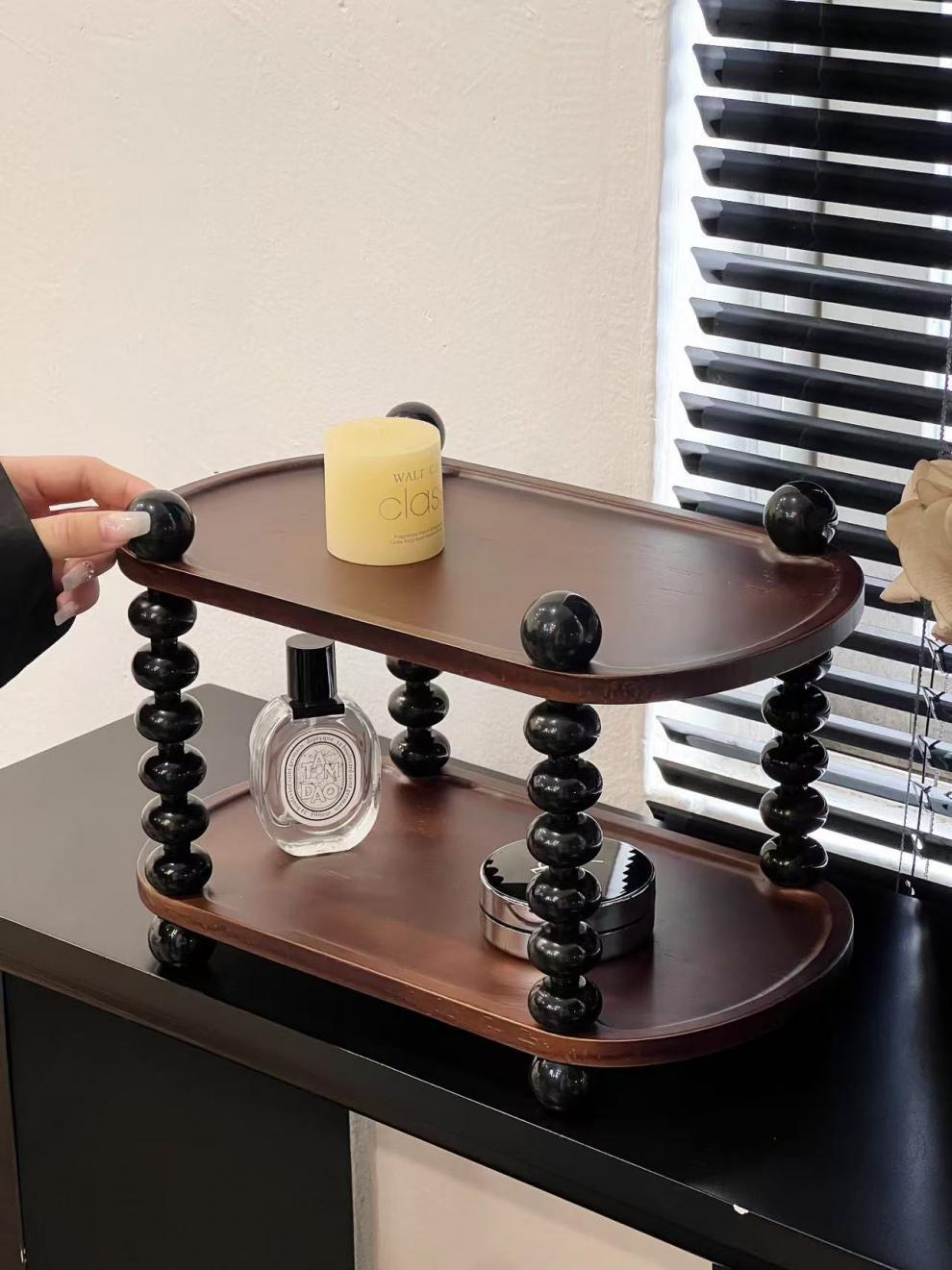 프렌치 월넛 중세 스타일 수납 선반, 가벼운 럭셔리 및 고급 데스크탑 향수 다기능 수납 선반
