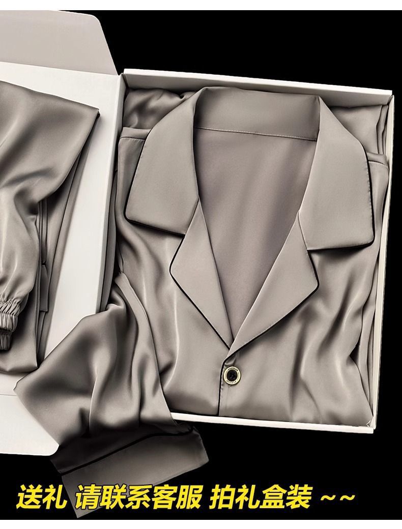 봄과 가을 긴 소매 뽕나무 실크 여름 색상 홈웨어 선물 상자 세트 남성용 고급 실크 잠옷스토어 가기