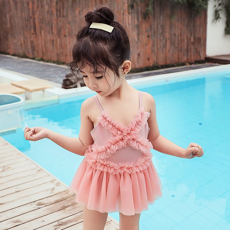 클리어런스 아동 수영복 24 여름 새 스타일 아동복 소녀 원피스 작은 공주 거즈 스커트 수영복 아기 수영복스토어 가기