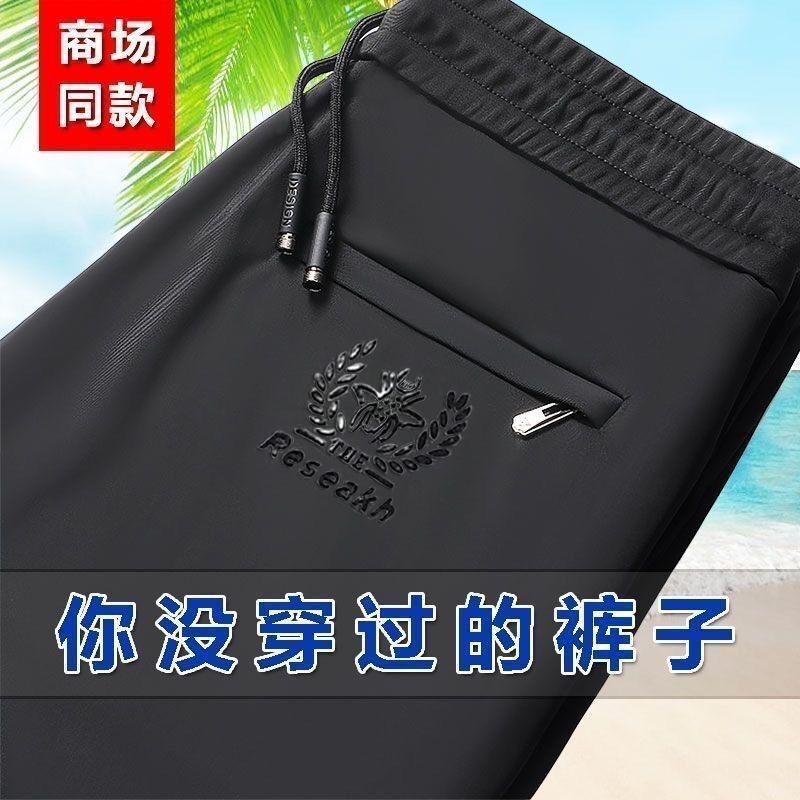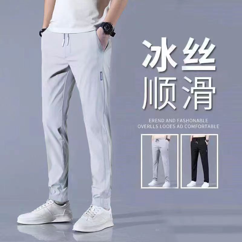 클래식 간단한 올 매치 통기성 쿨 아이스 실크 바지 여름 남자 스트레이트 퀵 건조 얇은 스포츠 캐주얼 바지스토어 가기