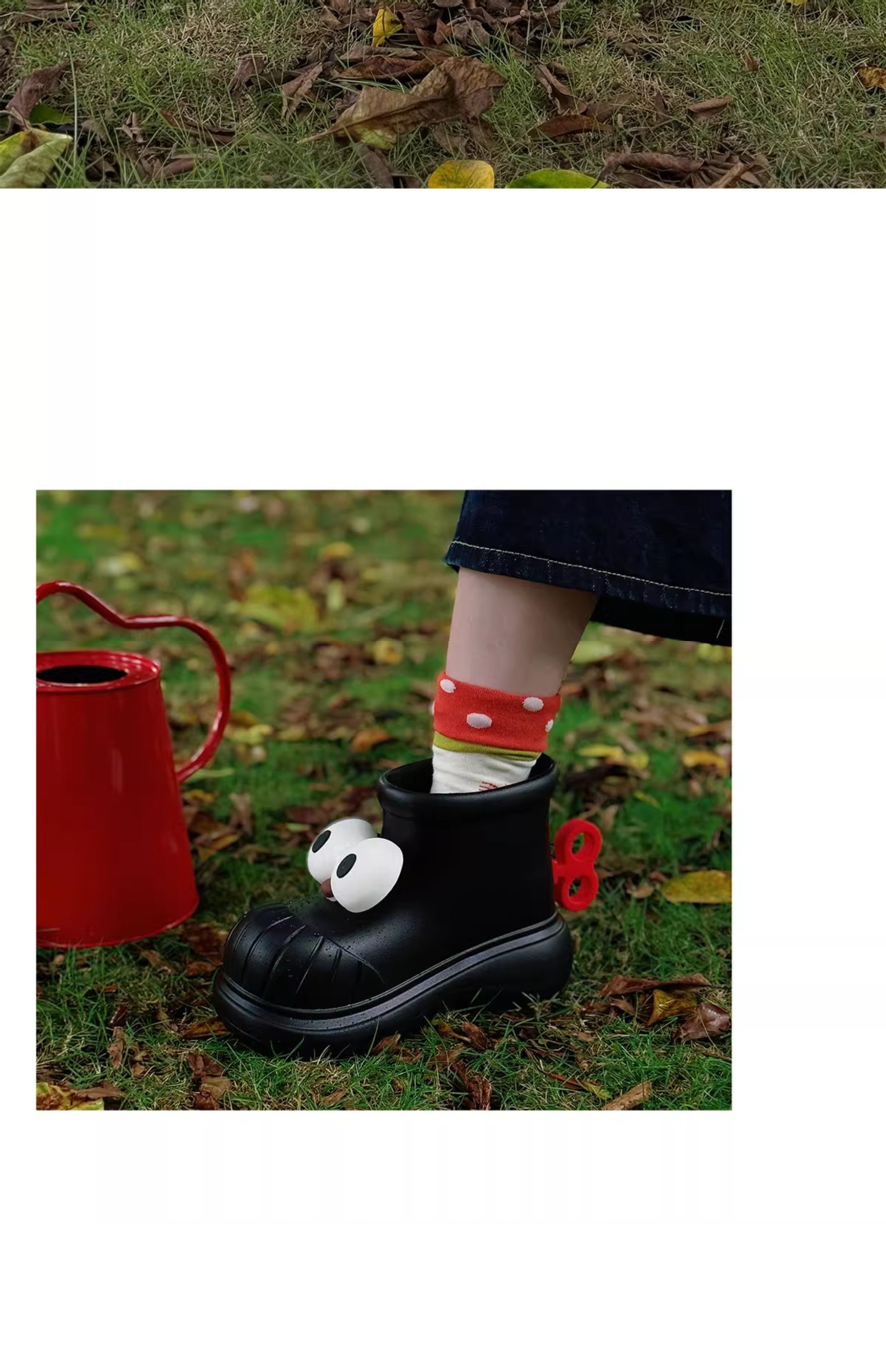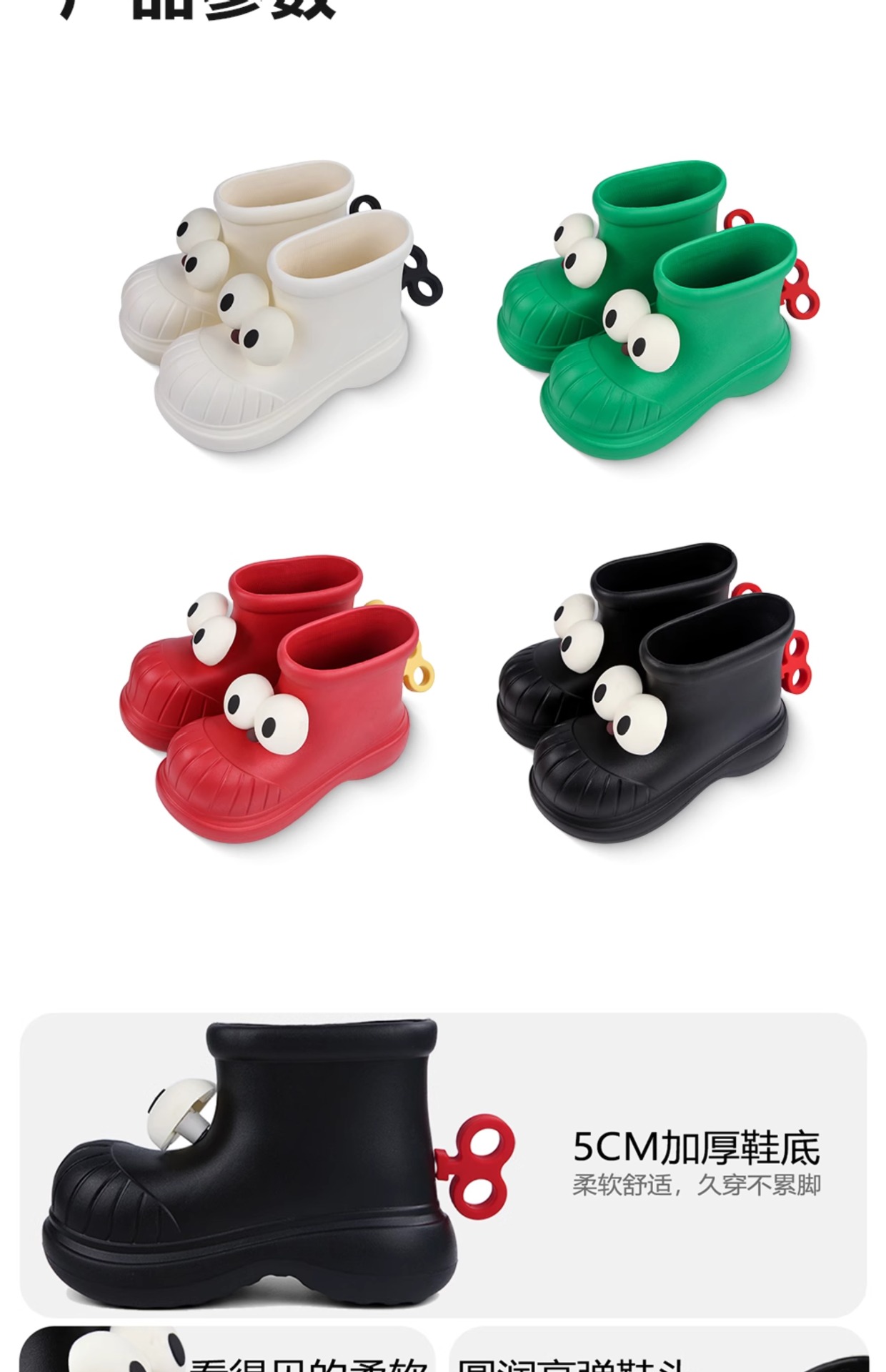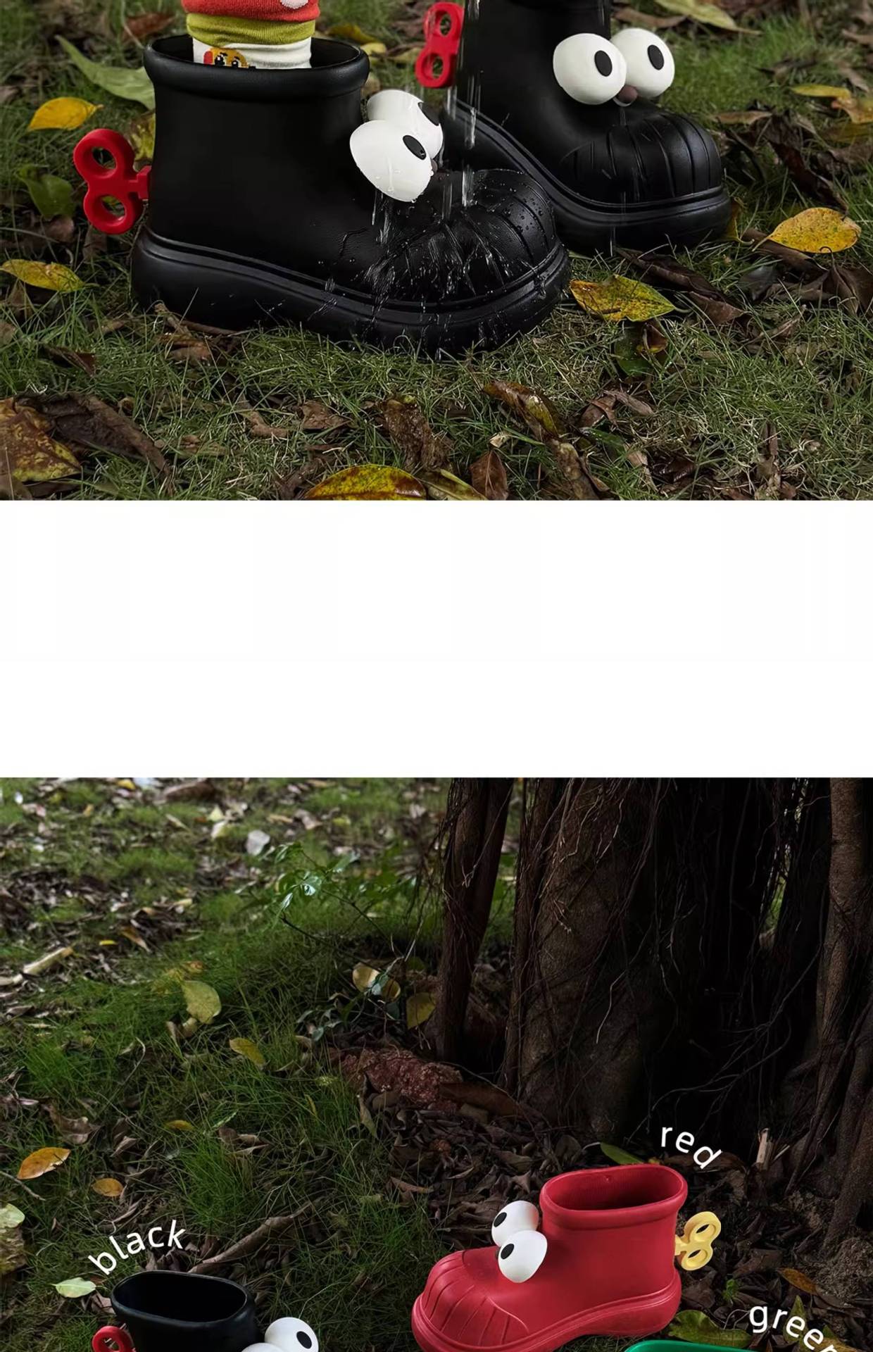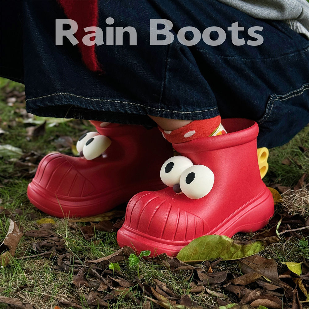 사계절 여성 야외 착용 방수 재미있는 둥근 발가락 큰 눈 워터 슈즈 레인 부츠 소녀 하트 패션 레인 부츠