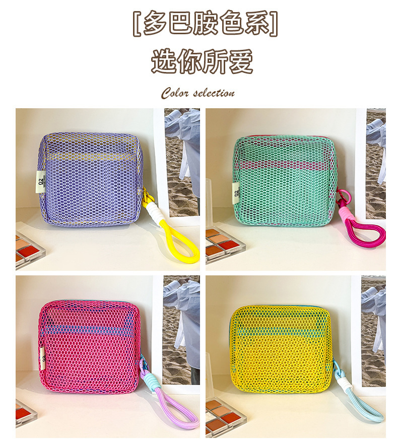 도파민 컬러 메쉬 두부 가방 사각 메쉬 잡화 저장 작은 가방 여행 다목적 데이터 라인 저장 가방