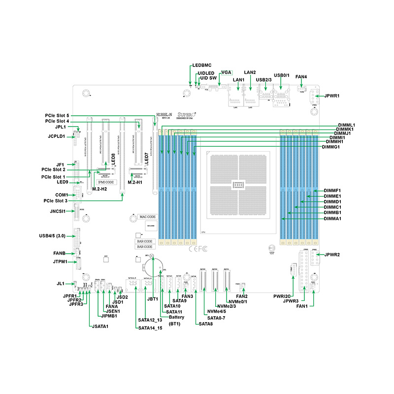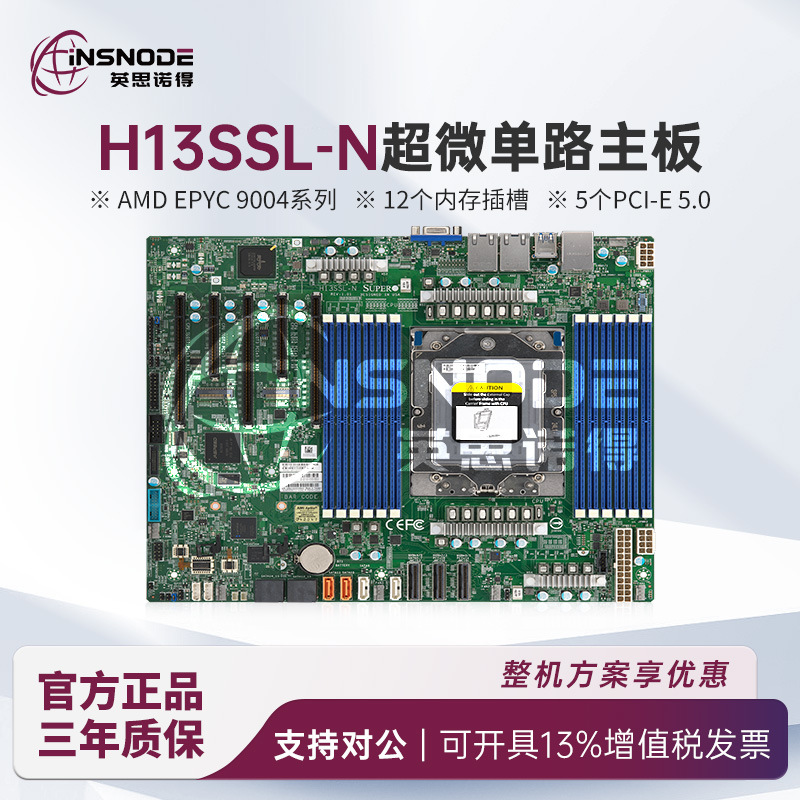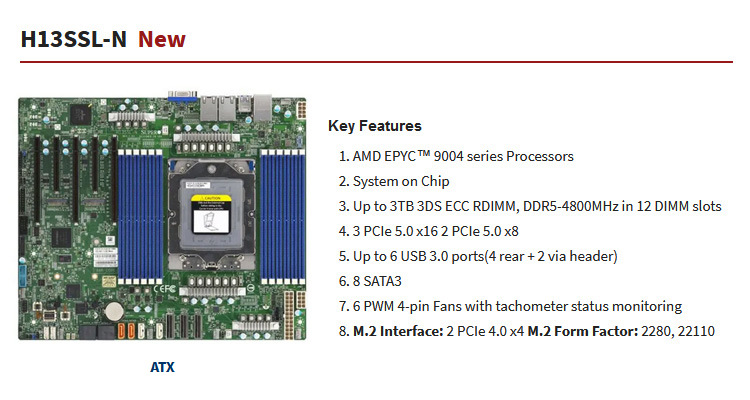 초미세 H13SSL-N 서버 마더보드 4세대 AMD EPYC 9004/4GPU/96코어 CPU/듀얼 기가비트