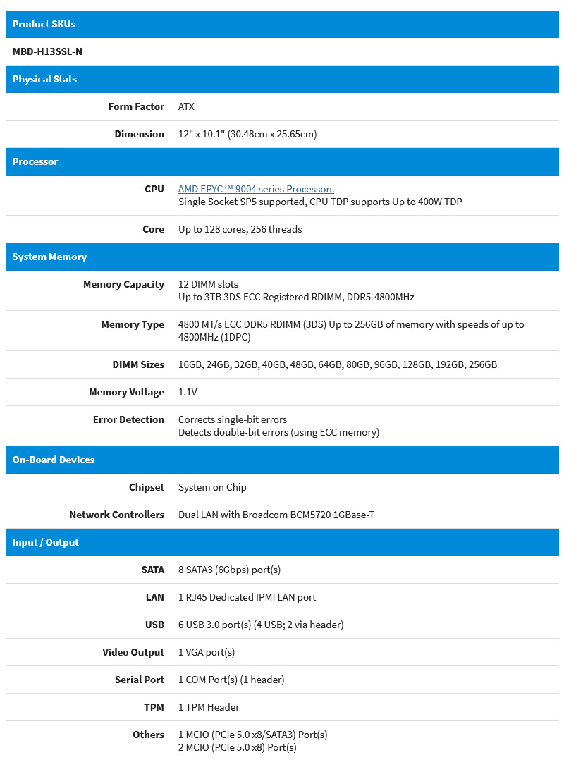 초미세 H13SSL-N 서버 마더보드 4세대 AMD EPYC 9004/4GPU/96코어 CPU/듀얼 기가비트스토어 가기