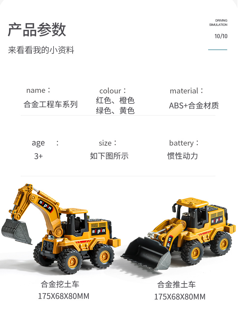 어린이 합금 굴삭기 어린이 장난감 소년 관성 장난감 자동차 노점 불도저 아기 장난감 도매스토어 가기