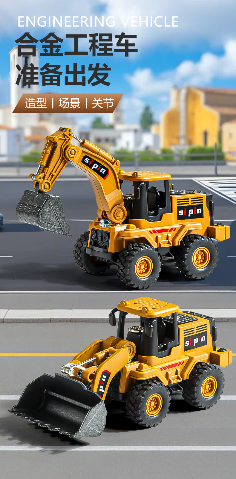 어린이 합금 굴삭기 어린이 장난감 소년 관성 장난감 자동차 노점 불도저 아기 장난감 도매