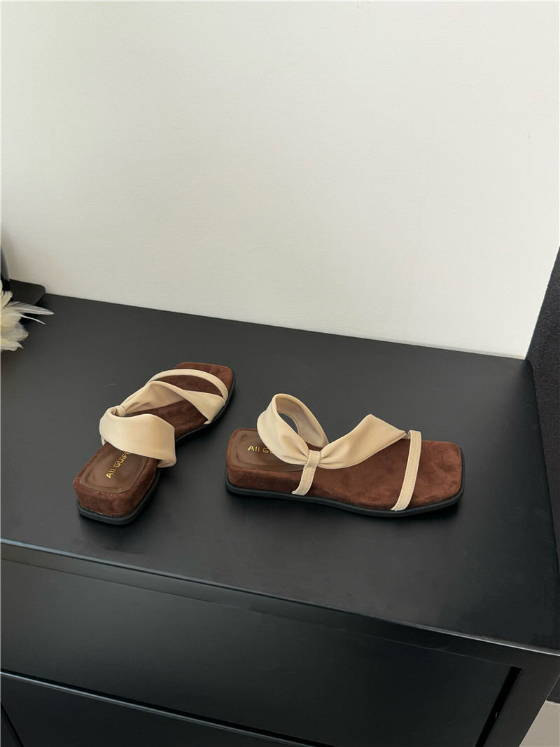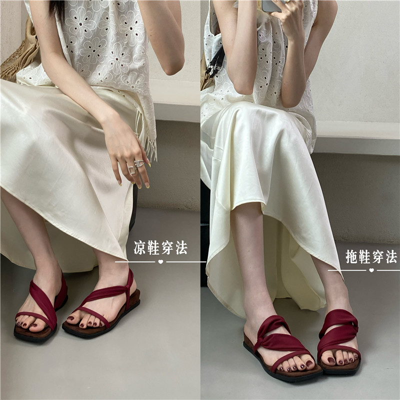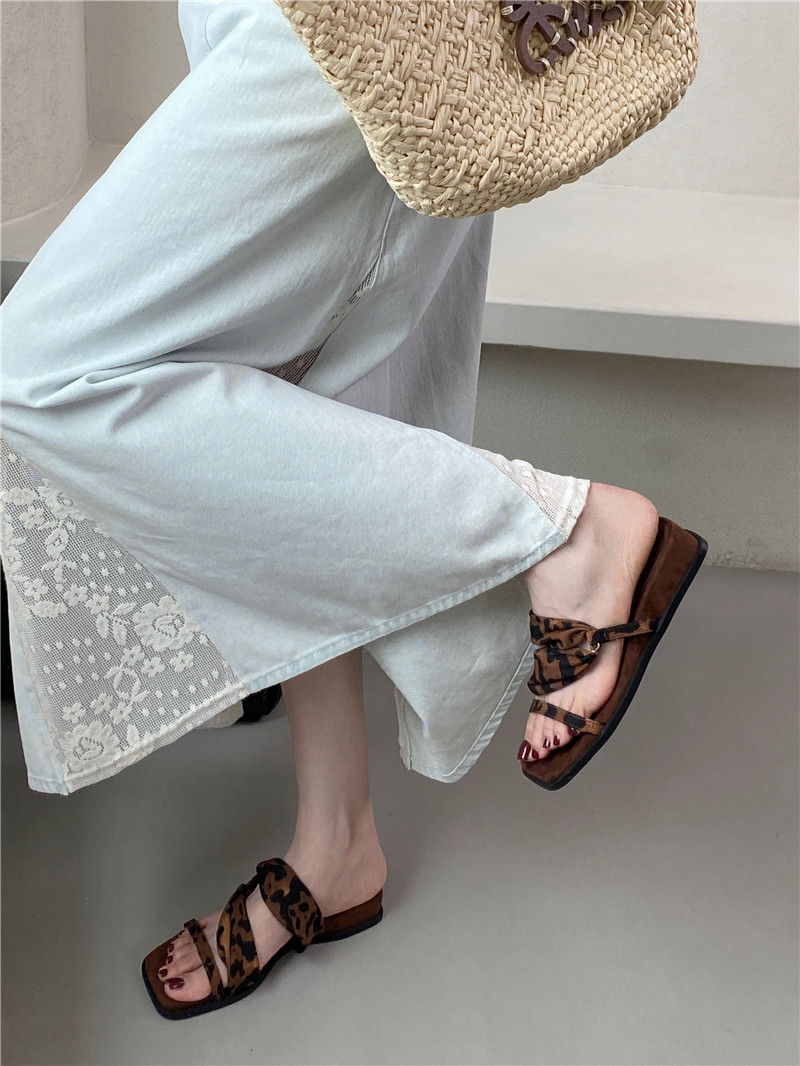 웨지 힐 프렌치 레오파드 무늬 슬리퍼 여성 여름 2025 새로운 투웨어 샌들 해변 홀리데이 샌들