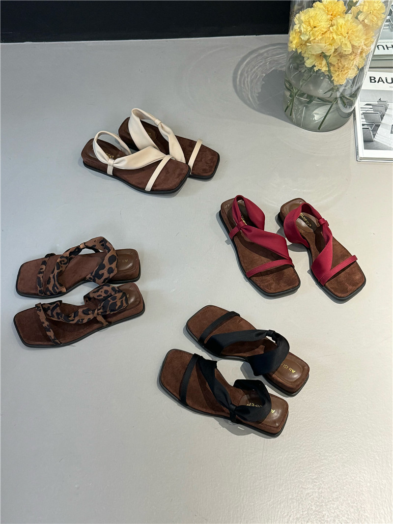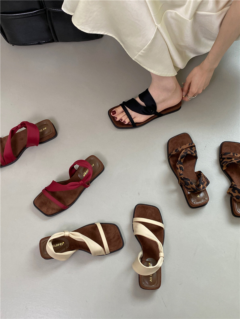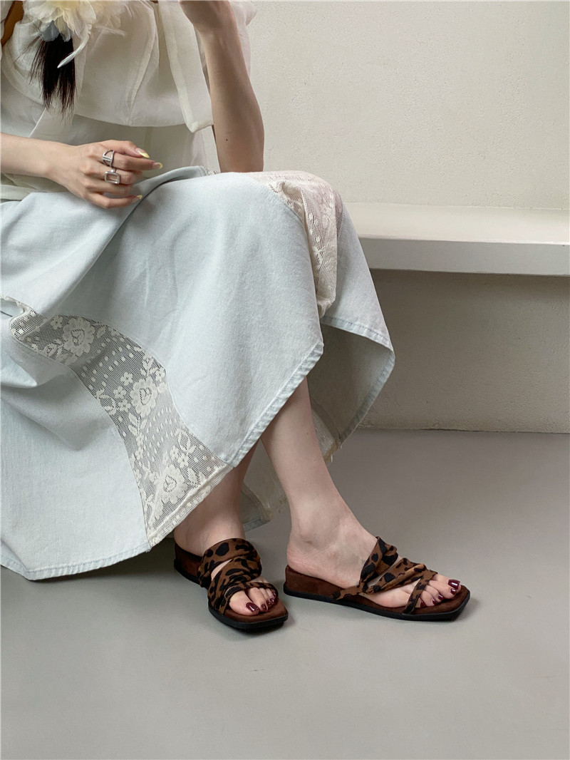웨지 힐 프렌치 레오파드 무늬 슬리퍼 여성 여름 2025 새로운 투웨어 샌들 해변 홀리데이 샌들스토어 가기