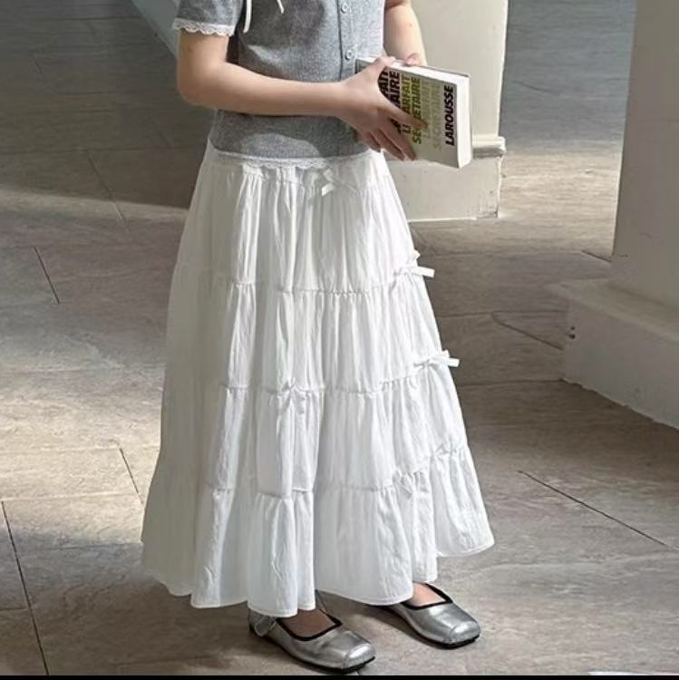 여자 치마 여름 어린이 케이크 공주 원피스 2025 새로운 한국 스타일 소녀의 흰색 미디 스커트