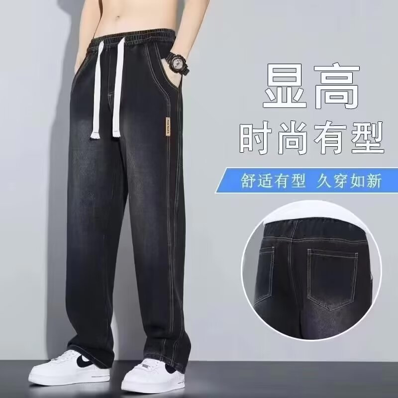 봄 여름 가을 느슨한 직선 다리 청바지 2025 남성 미국 스타일 하이 스트리트 패션 브랜드 와이드 다리 캐주얼 긴 바지스토어 가기